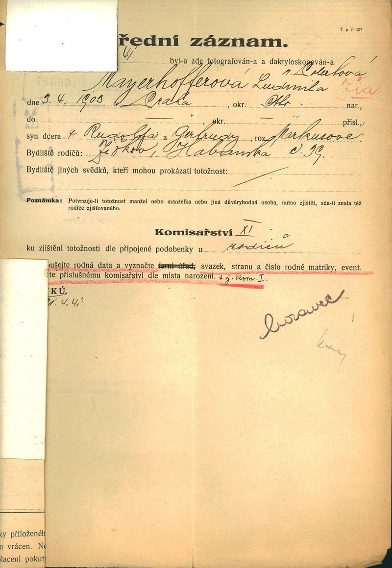 Mayerhofferová Ludmila: Šetření o totožnosti