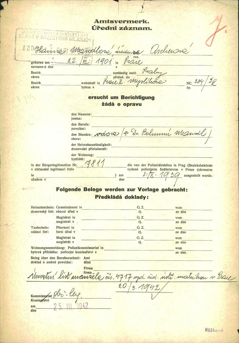 Mandlová Hana: Žádost o opravu v občanské legitimaci