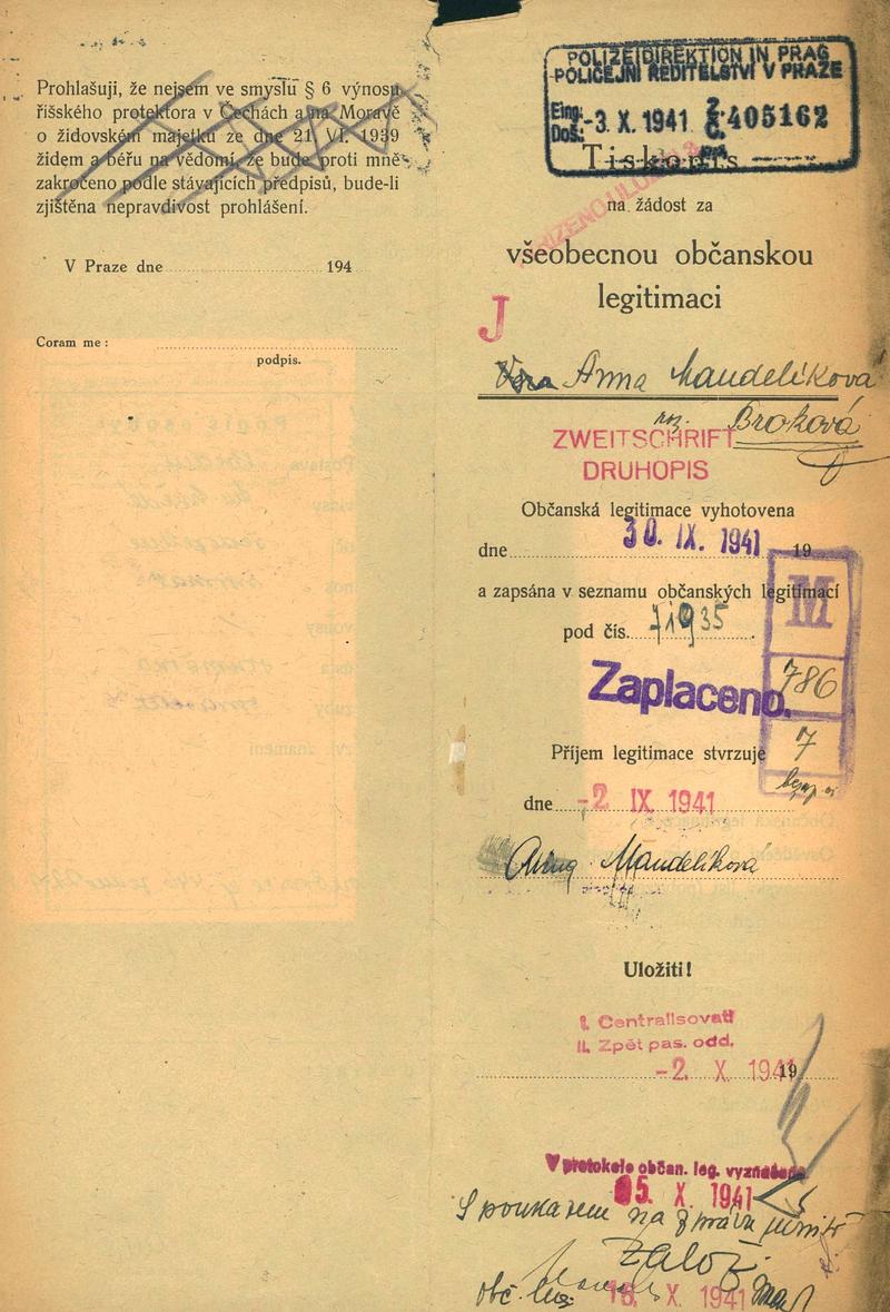 Mandeliková Anna: Žádost o vydání občanské legitimace