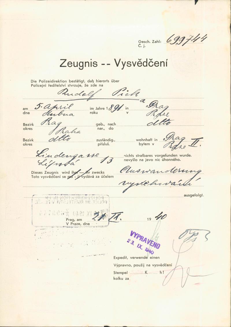 Národní archiv Praha > Policejní ředitelství v Praze > 1931-1940 > P > Pick Rudolf