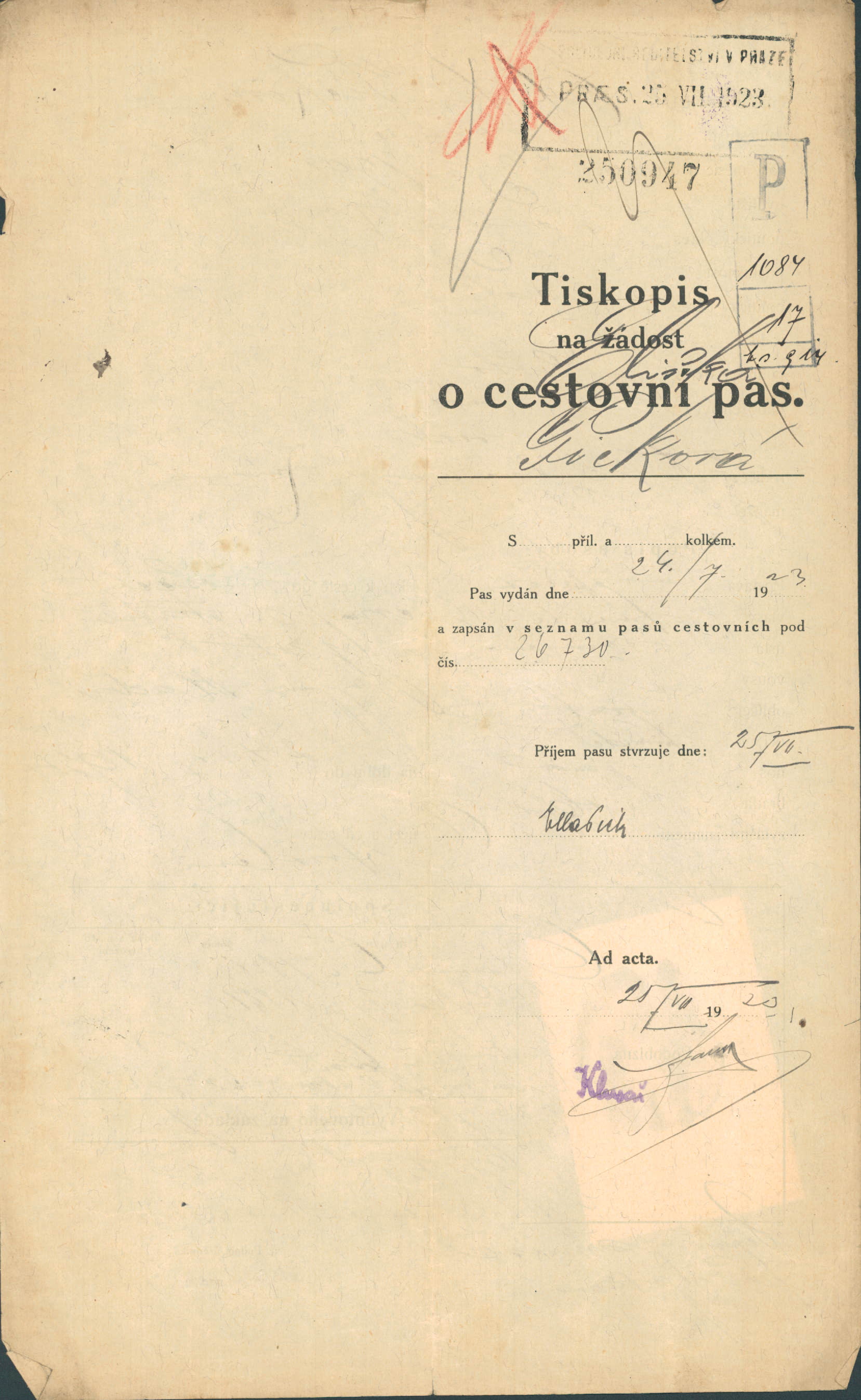Picková Eliška: Žádost o vydání cestovního pasu