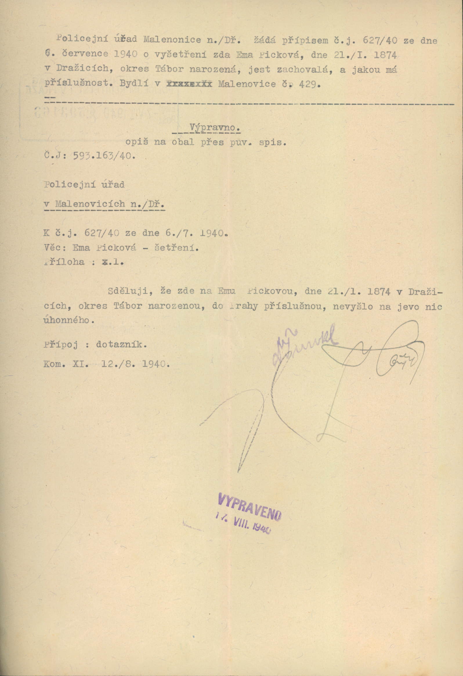 Picková Emilie: Šetření o zachovalosti