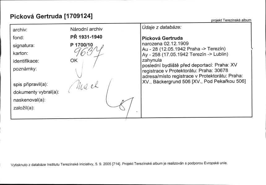Picková Gertruda: NEZPRACOVÁNO