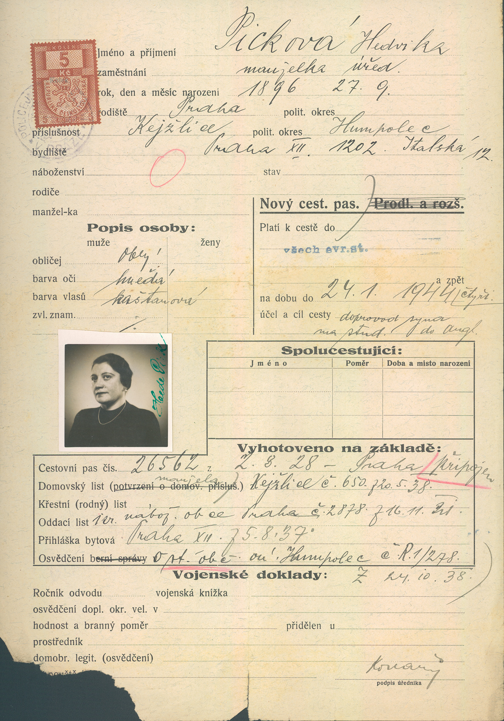 Picková Hedvika: Žádost o vydání cestovního pasu