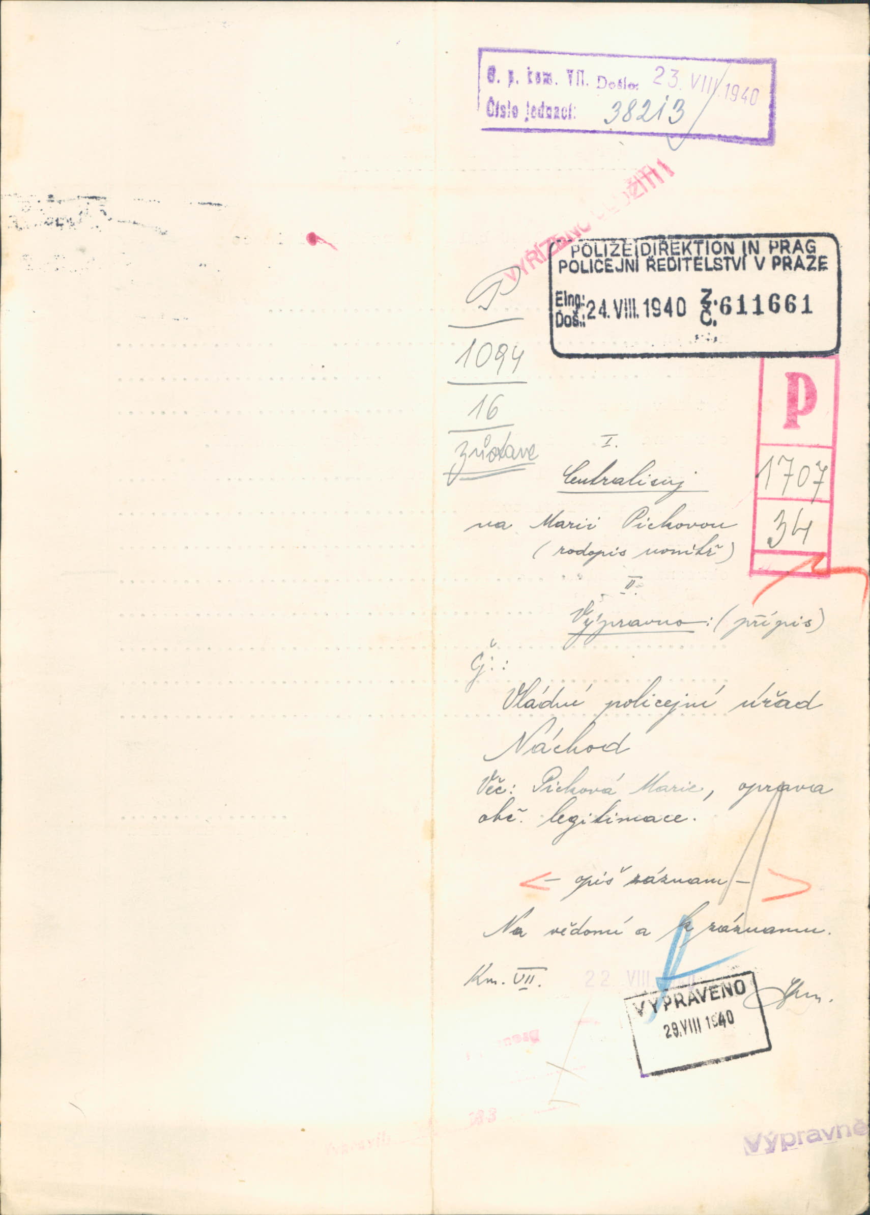 Picková Marie: Žádost o opravu občanské legitimace