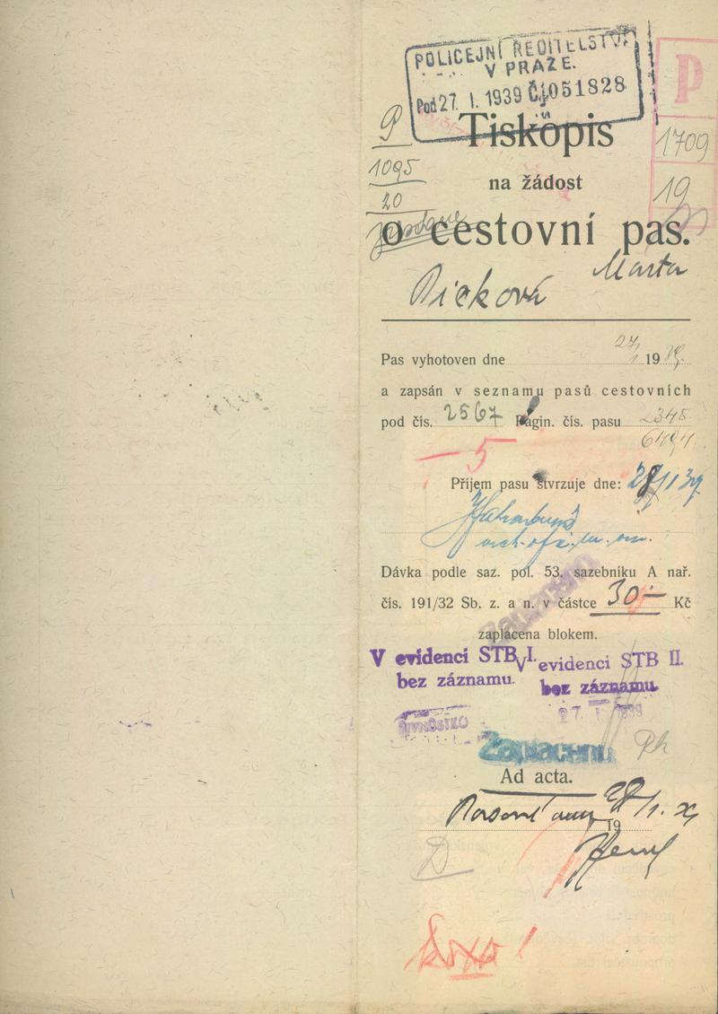 Národní archiv Praha > Policejní ředitelství v Praze > 1931-1940 > P > Picková Marta