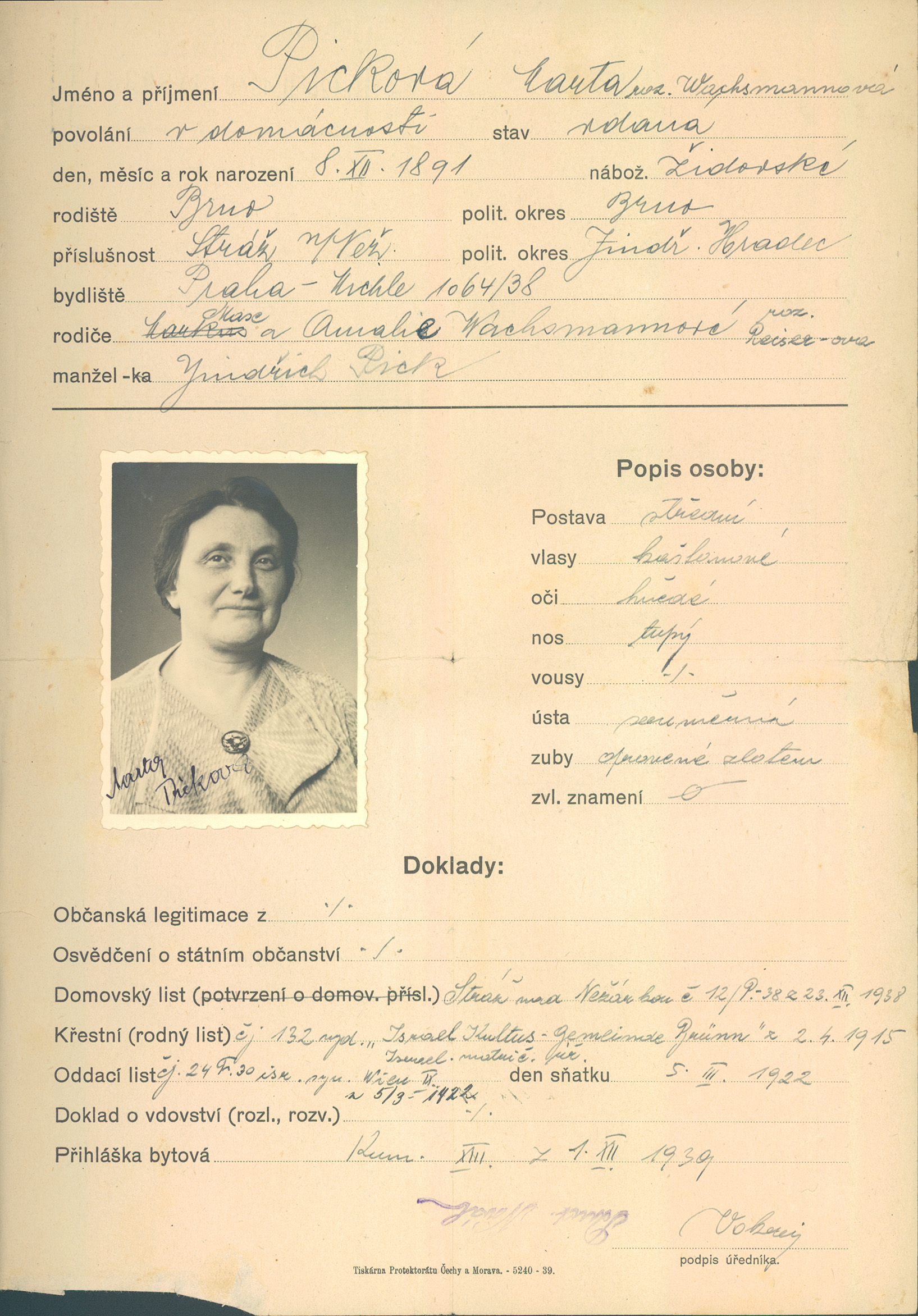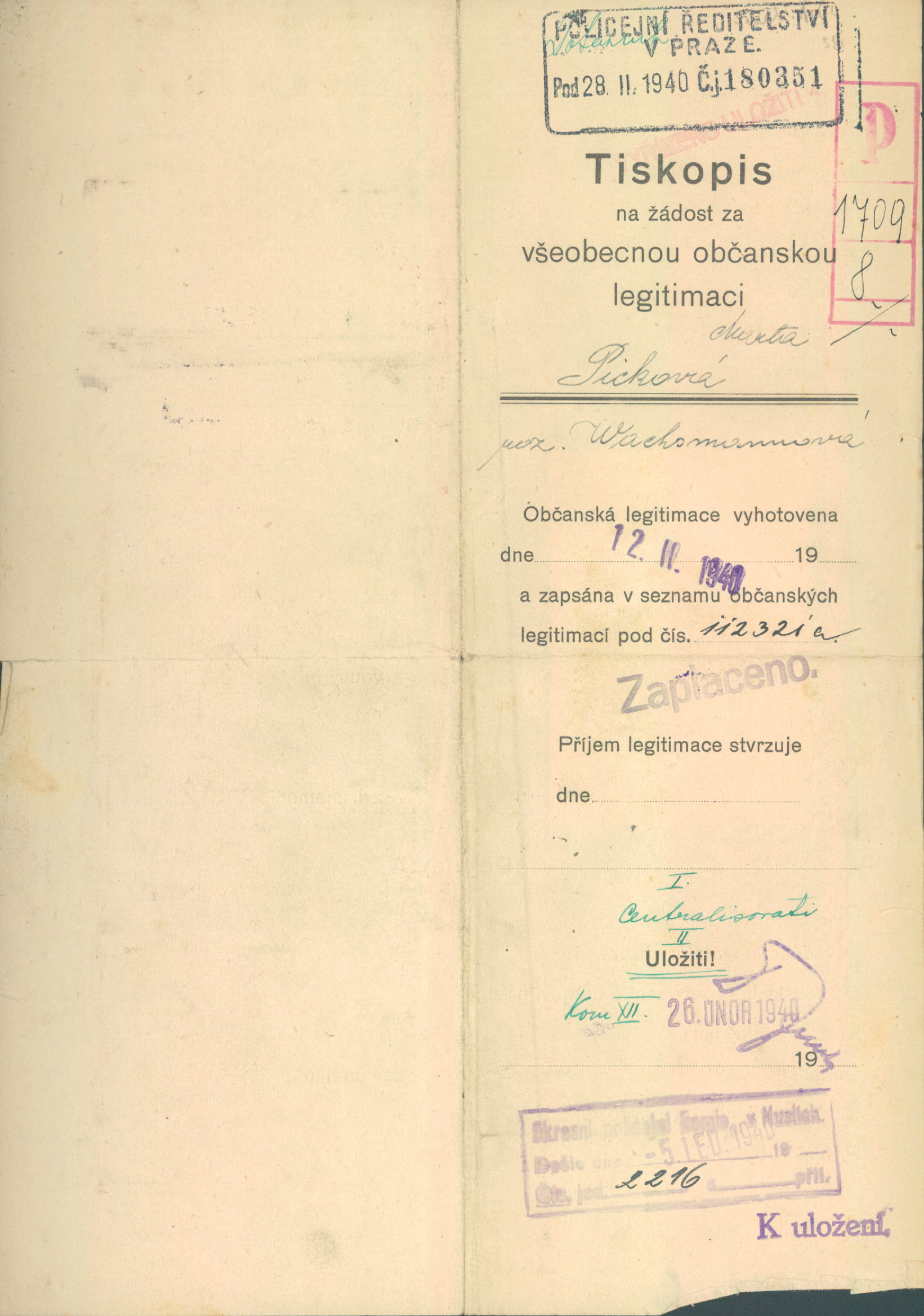 Picková Marta: Žádost o vydání občanské legitimace