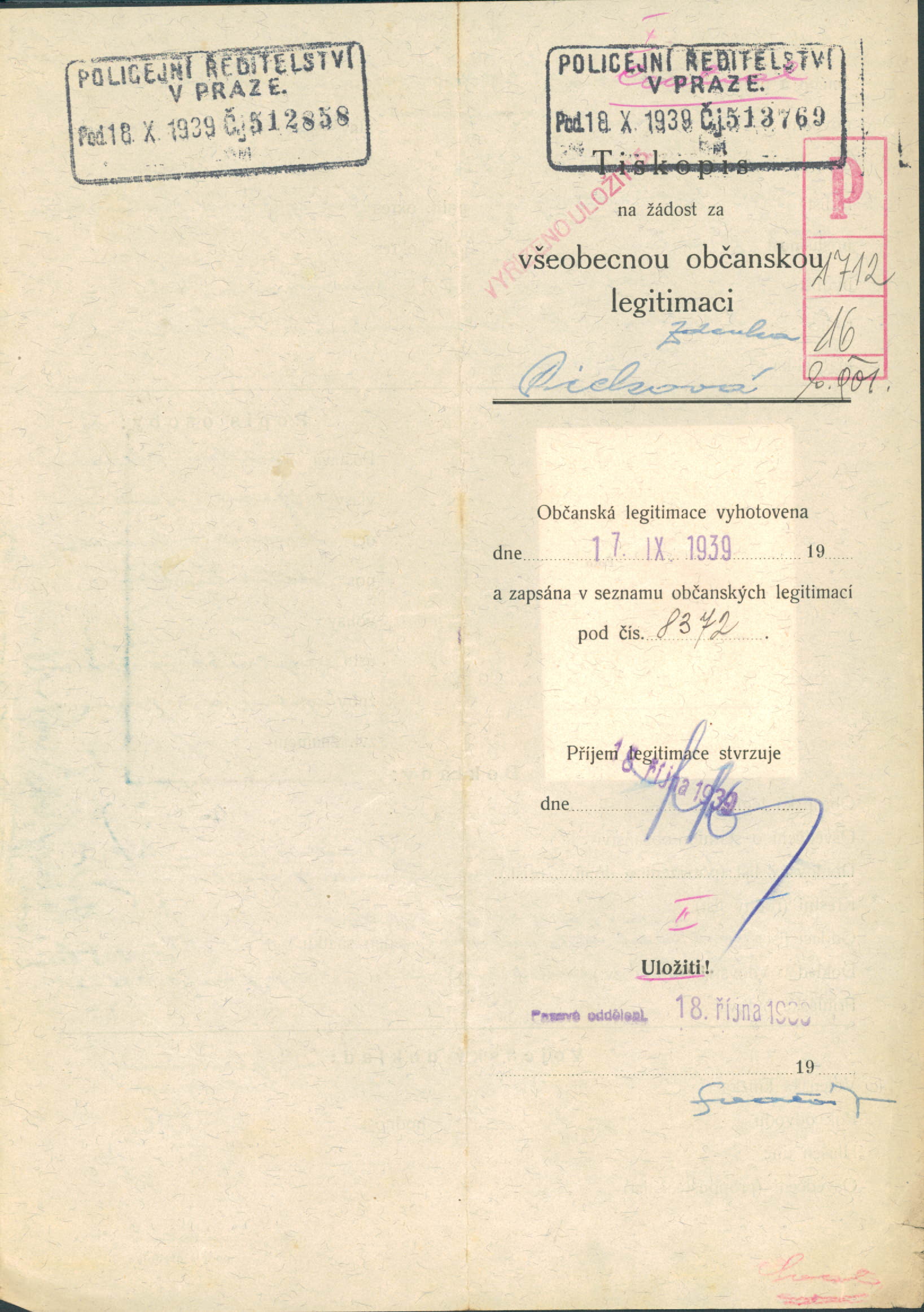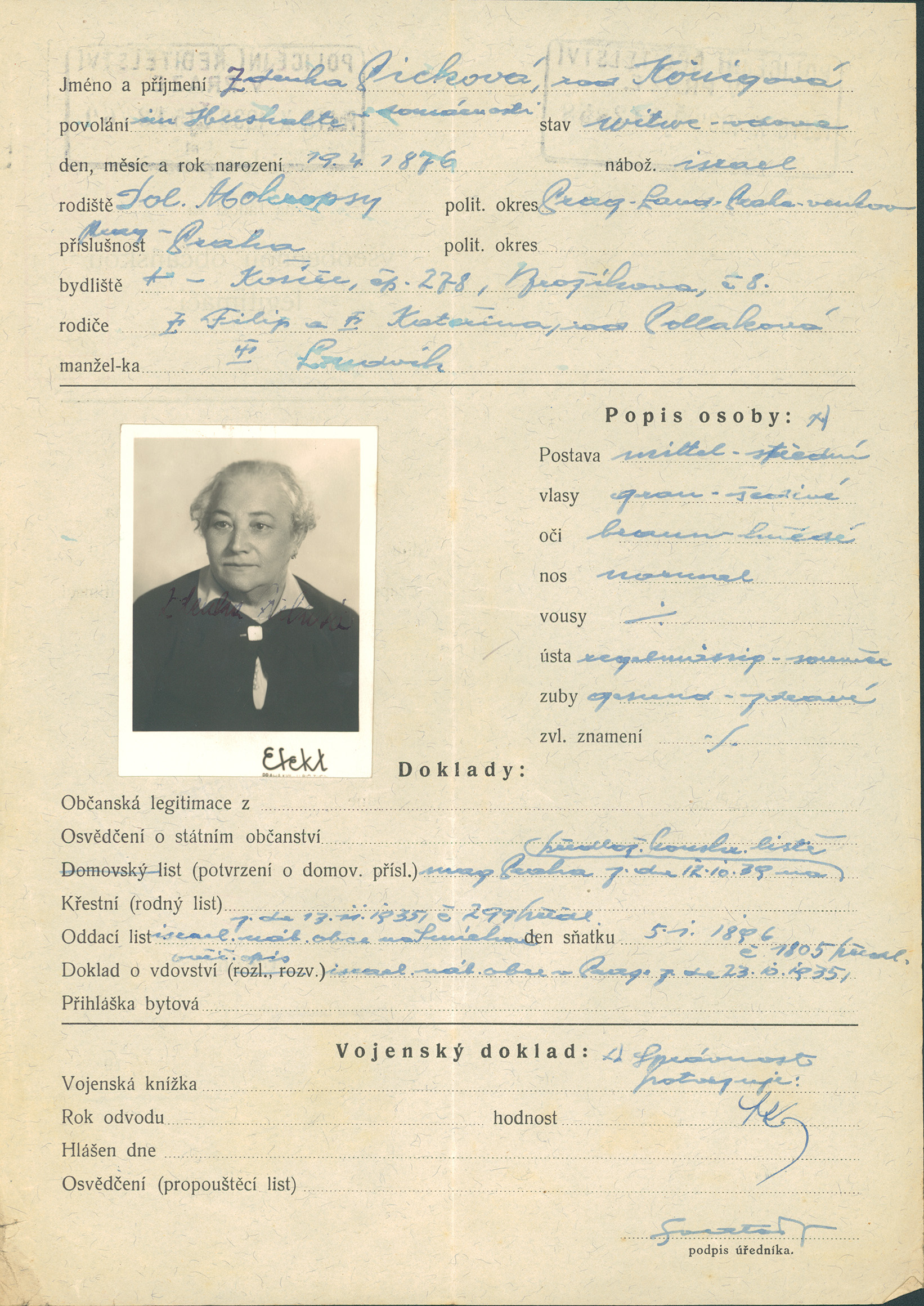 Picková Zděnka: Žádost o vydání občanské legitimace