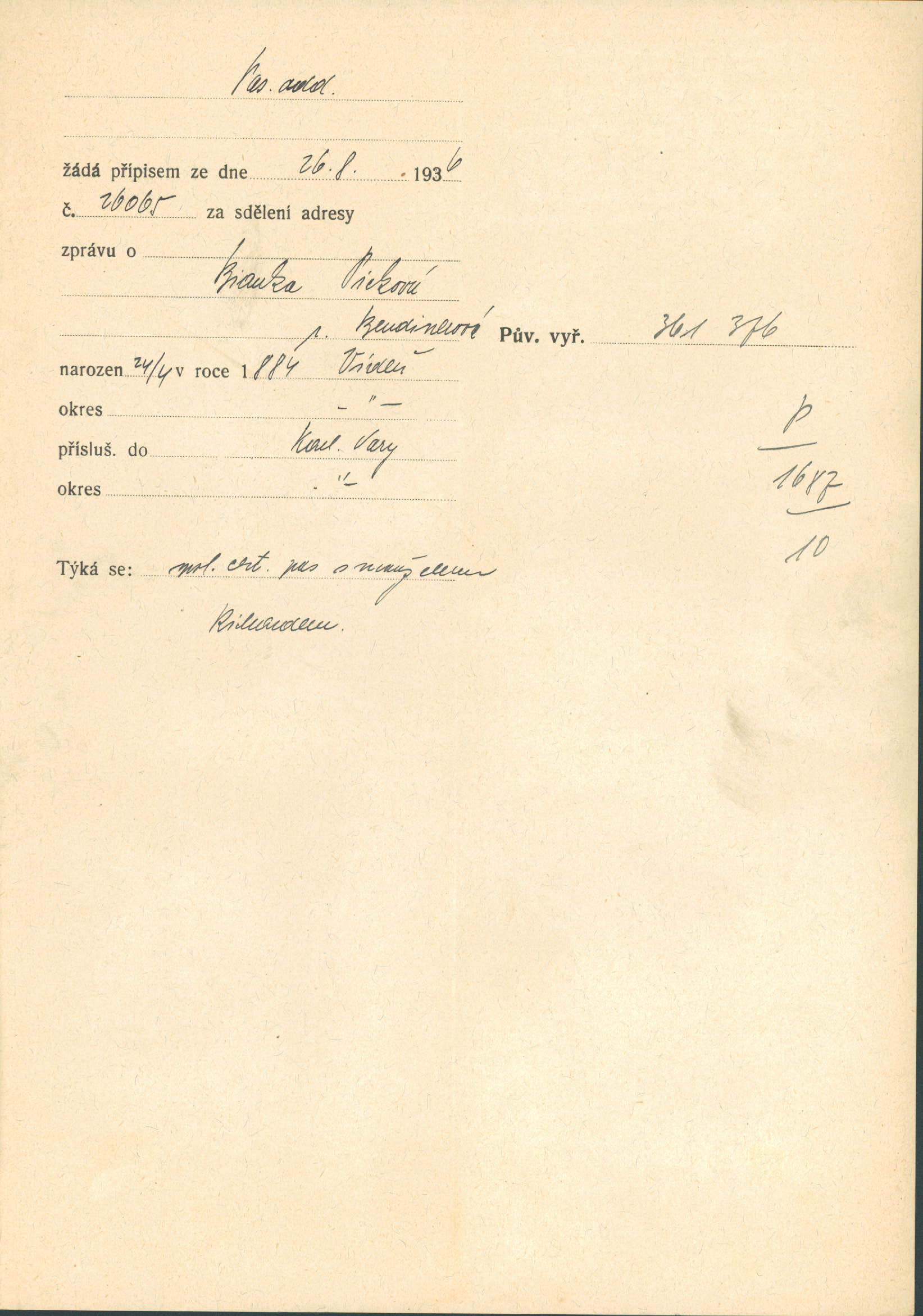 Picková Blanka: Šetření o pobytu