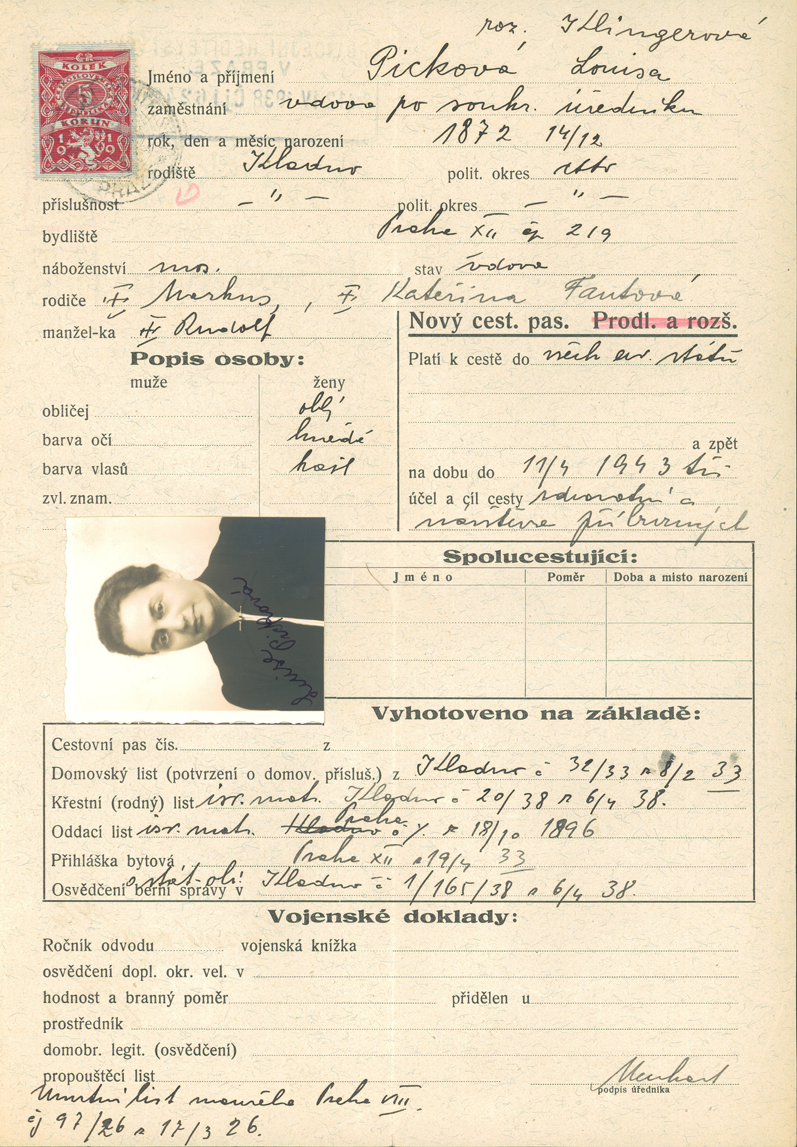 Picková Luisa: Žádost o vydání cestovního pasu