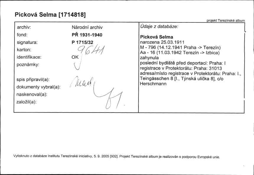 Picková Selma: NEZPRACOVÁNO