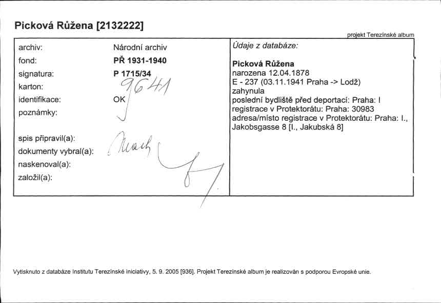 Picková Růžena: NEZPRACOVÁNO