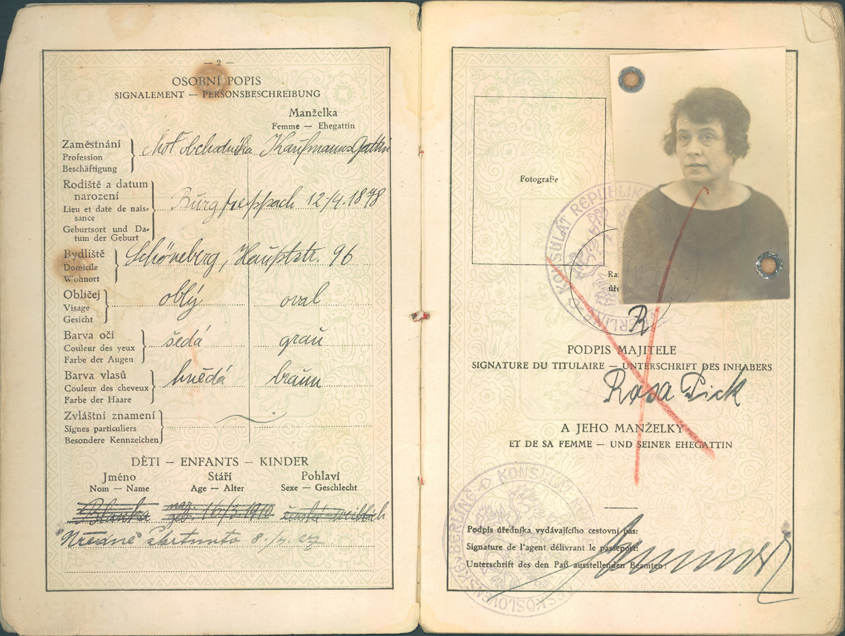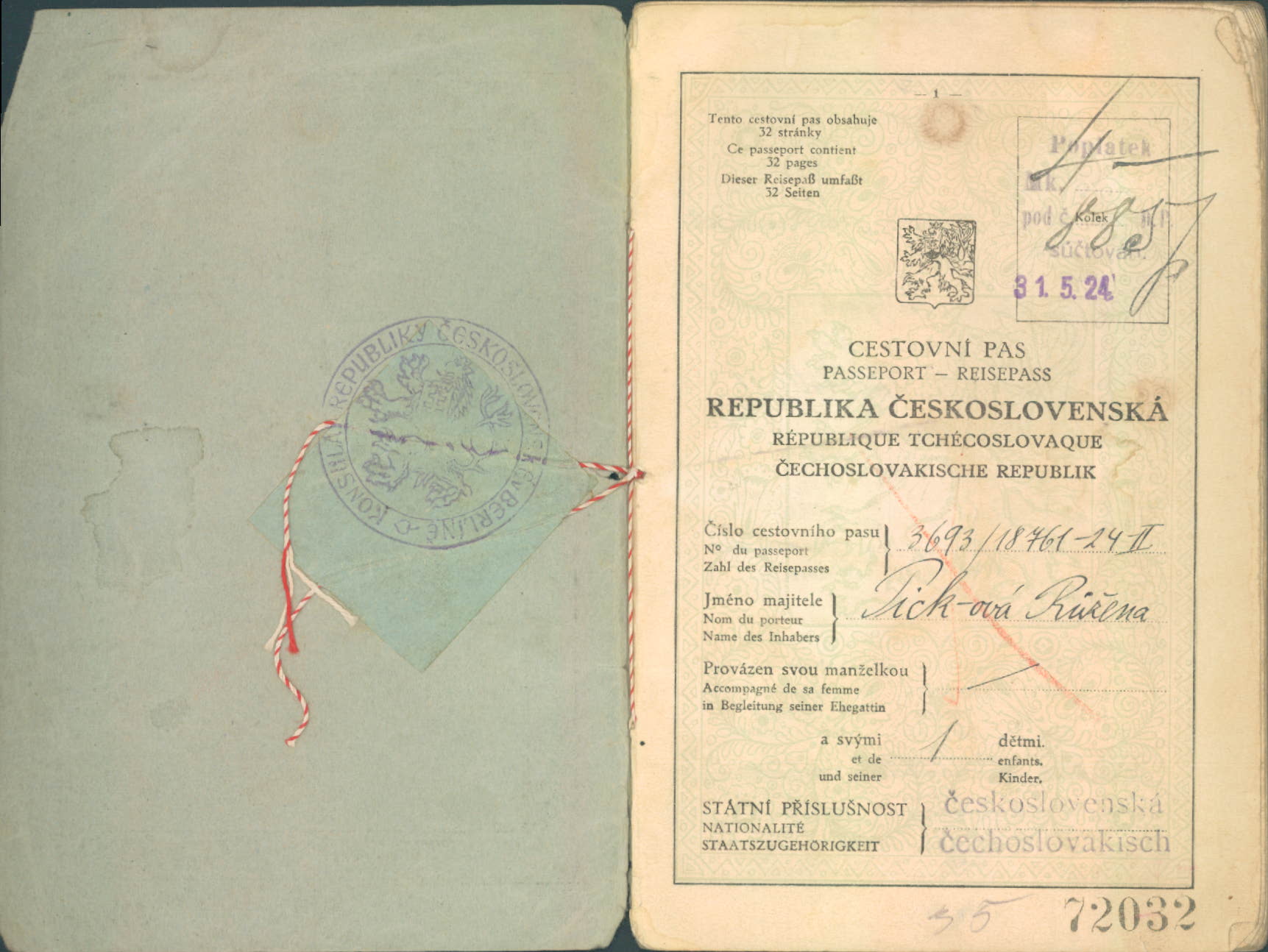Picková Růžena: Cestovní pas