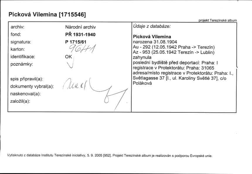 Picková Vilemina: NEZPRACOVÁNO