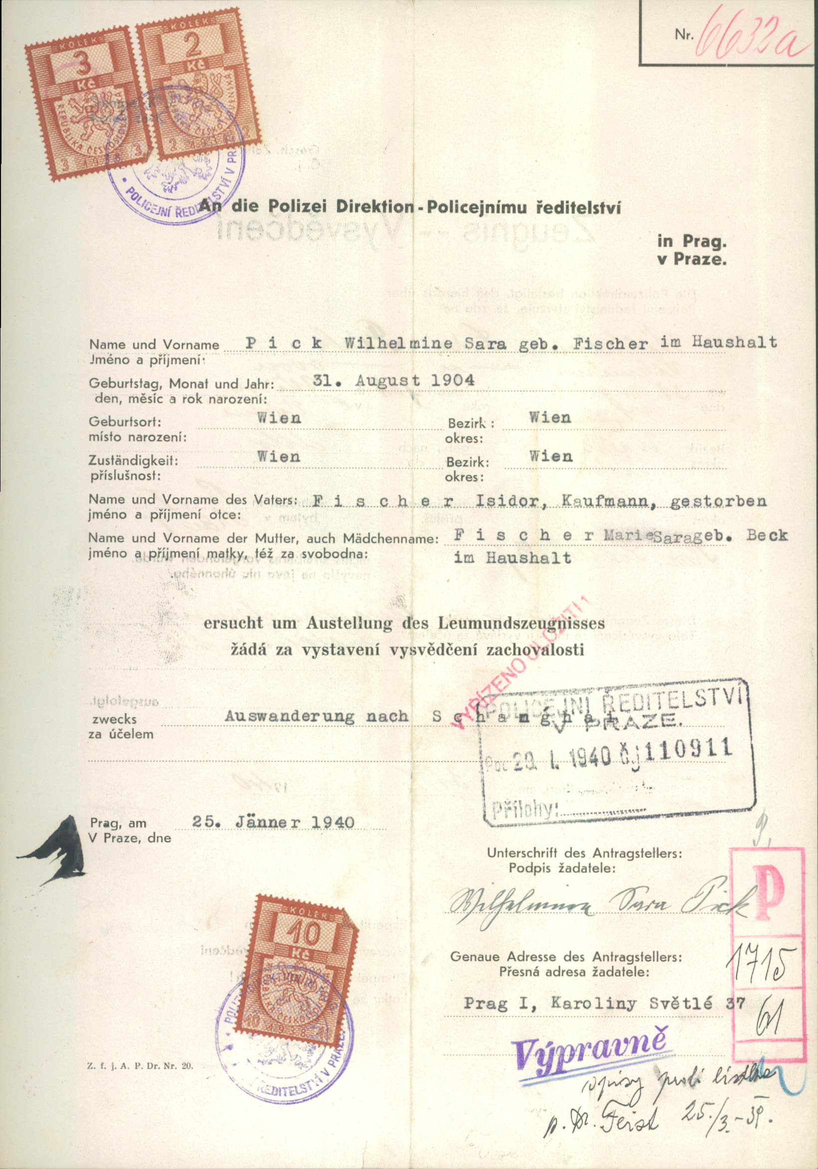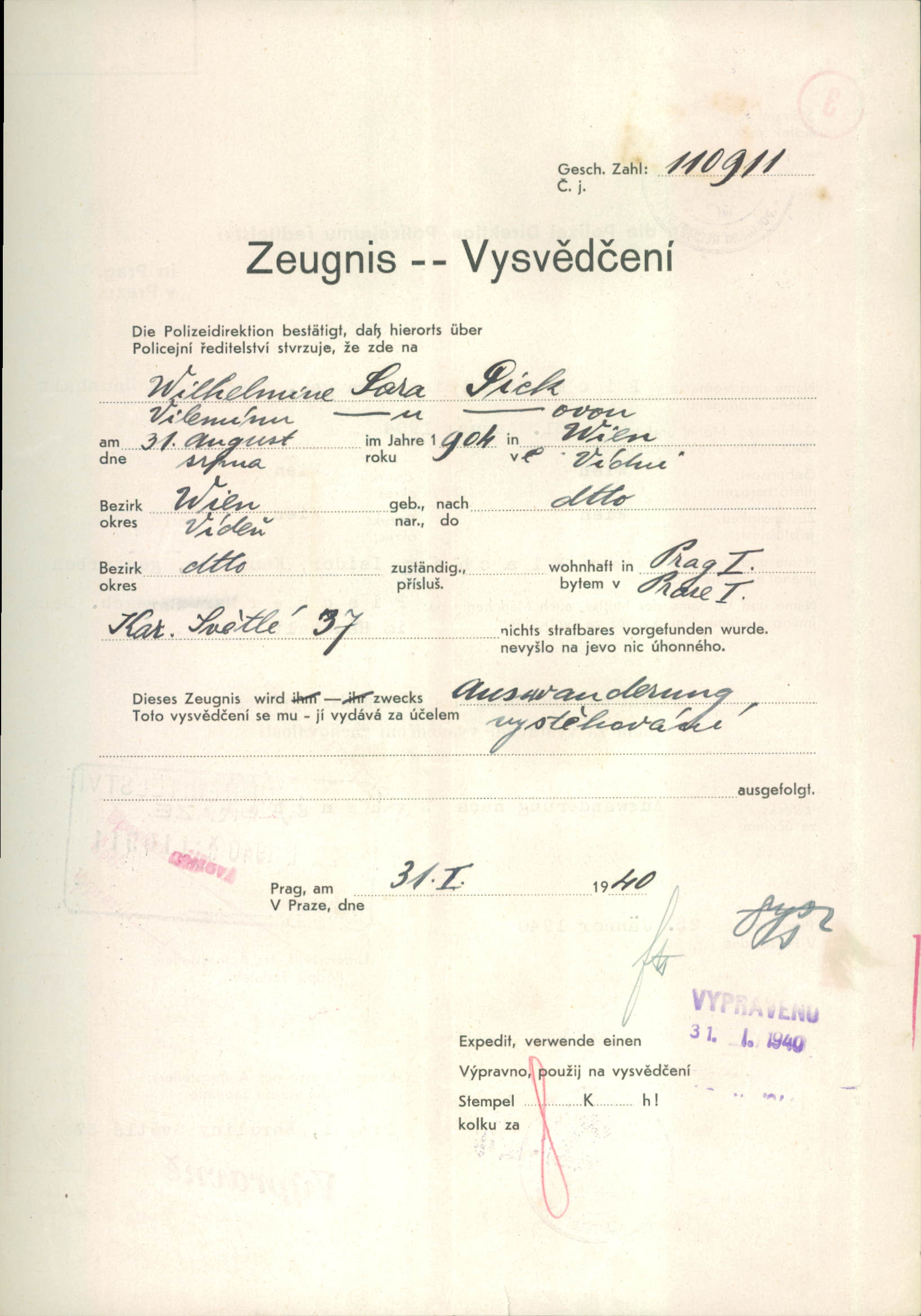 Picková Vilemina: Vysvědčení zachovalosti