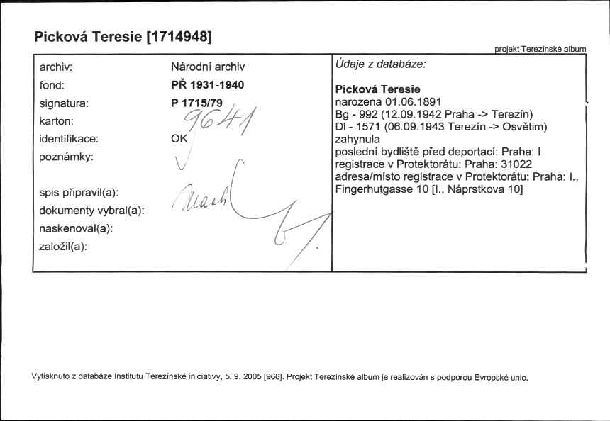 Picková Teresie: NEZPRACOVÁNO