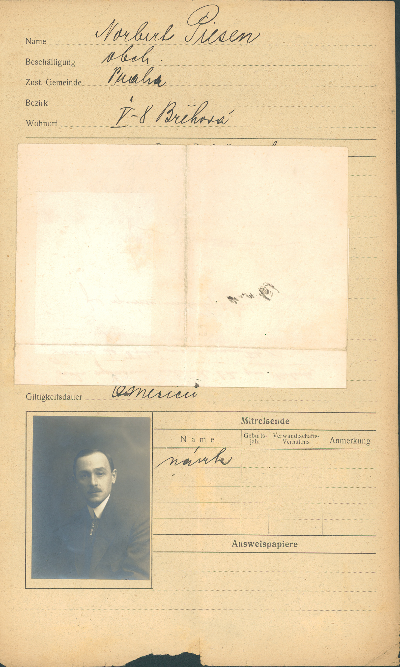 Piesen Norbert: Žádost o vydání cestovního pasu