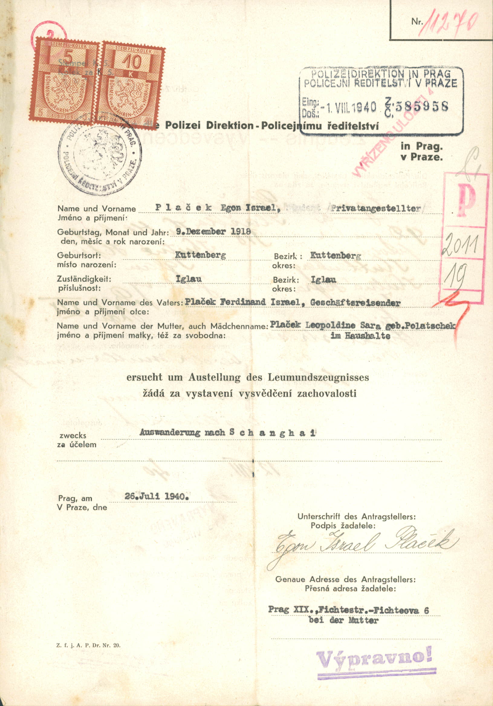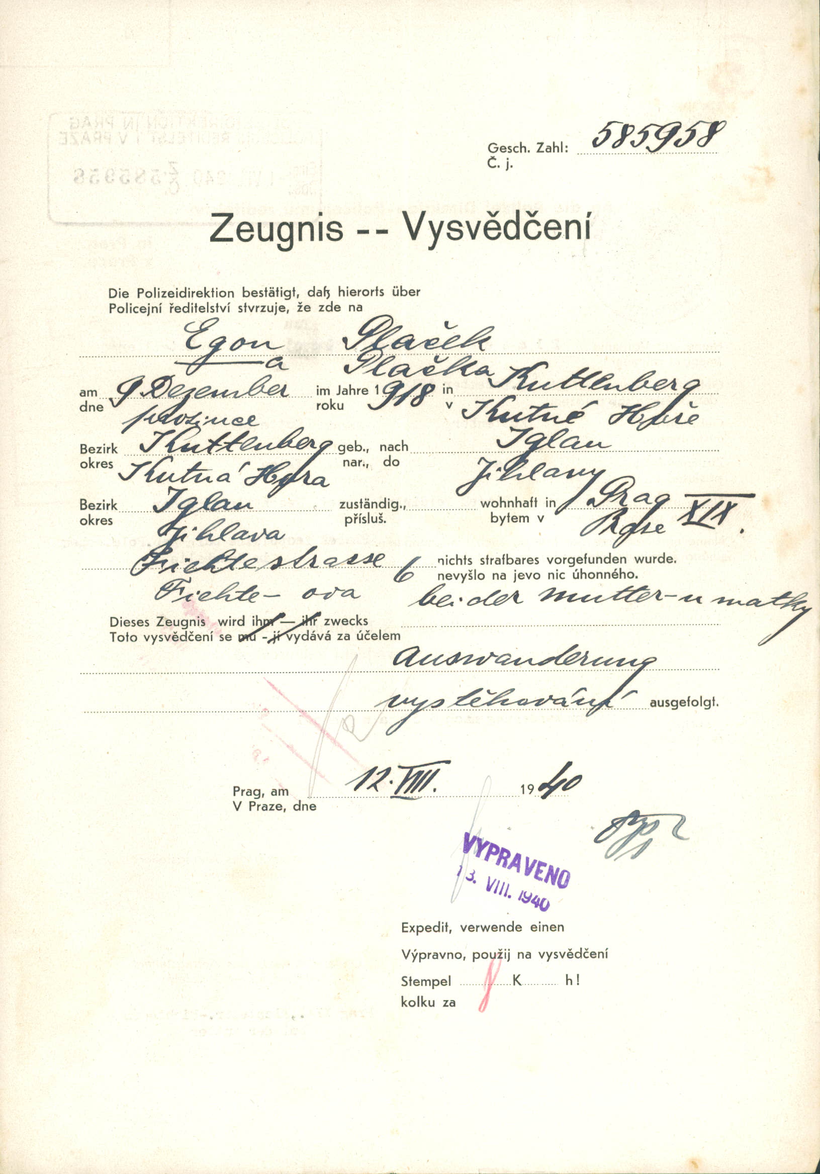 Plaček Egon: Vysvědčení zachovalosti