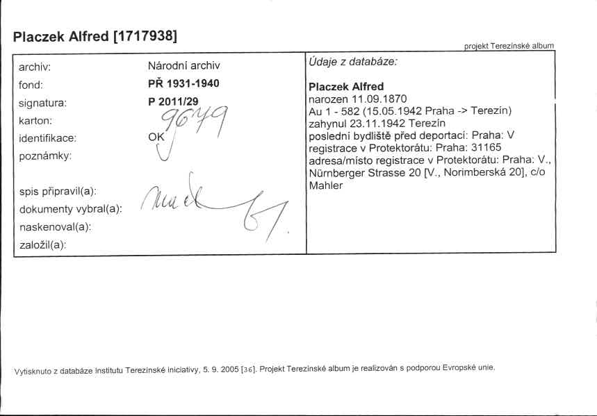 Placzek Alfred: NEZPRACOVÁNO