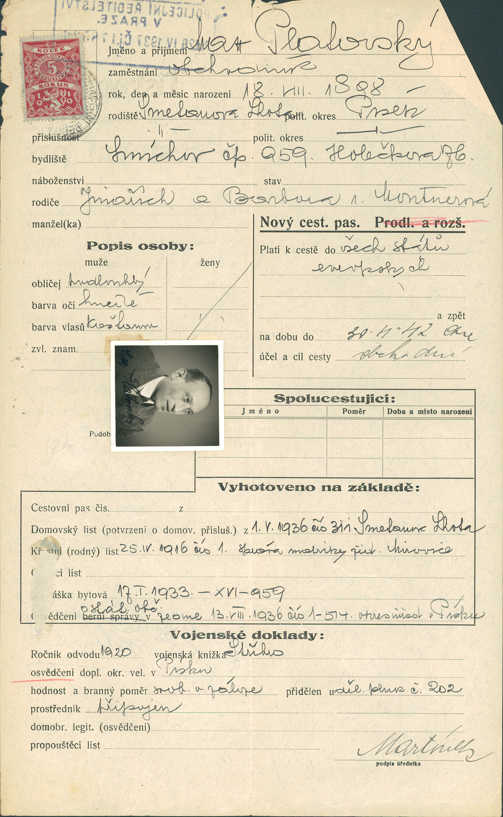Platovský Maxmilian: Žádost o vydání cestovního pasu