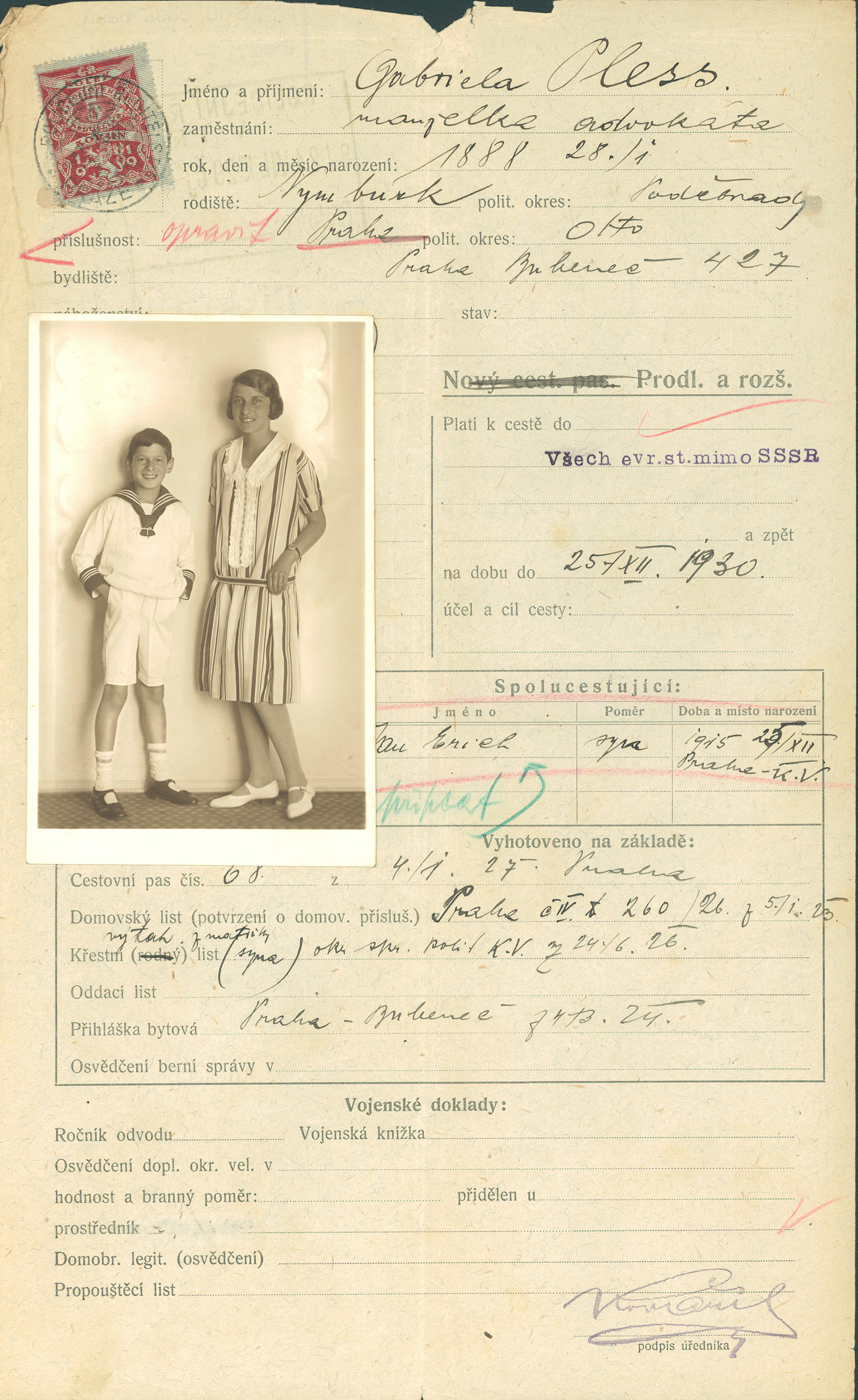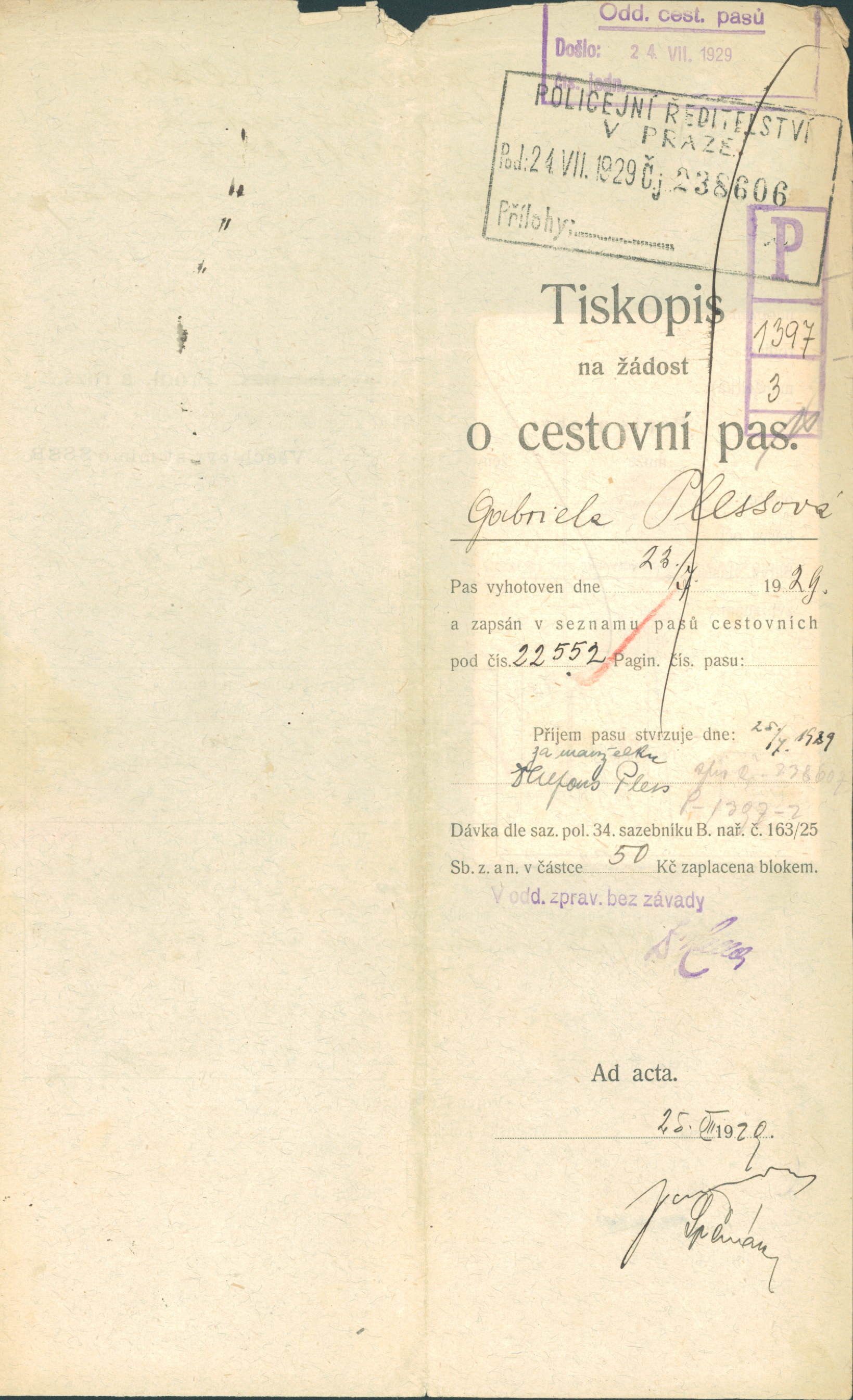 Plessová Gabriela: Žádost o vydání cestovního pasu