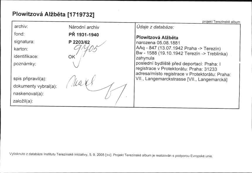 Plowitzová Alžběta: NEZPRACOVÁNO