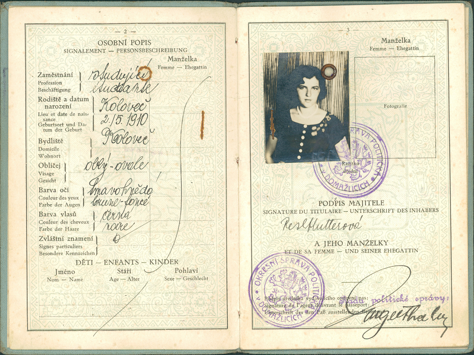 Podvincová Terezie: Cestovní pas