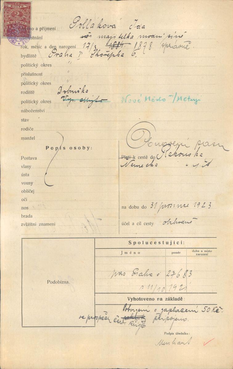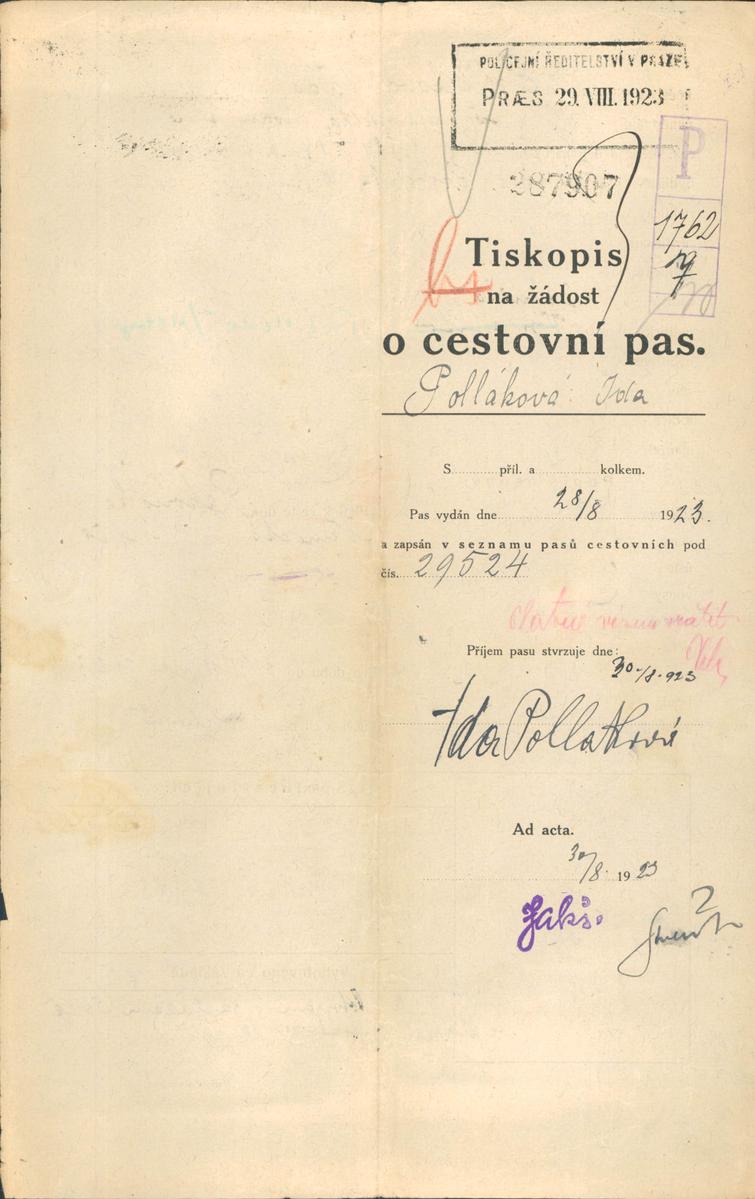 Národní archiv Praha > Policejní ředitelství v Praze > 1931-1940 > P > Pollaková Ida