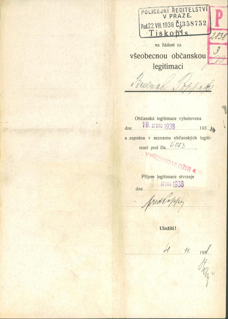 Národní archiv Praha > Policejní ředitelství v Praze > 1931-1940 > P > Popper Bedřich