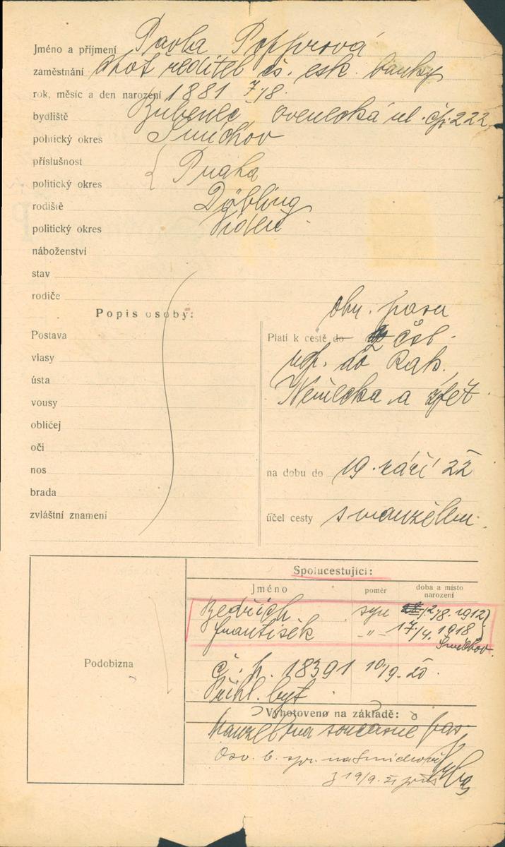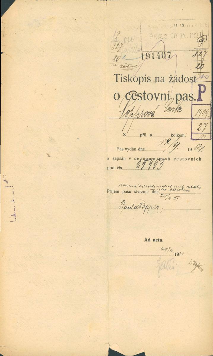 Národní archiv Praha > Policejní ředitelství v Praze > 1931-1940 > P > Popperová Pavla