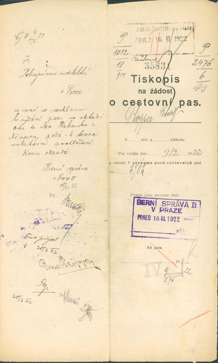 Národní archiv Praha > Policejní ředitelství v Praze > 1931-1940 > P > Propper Rudolf