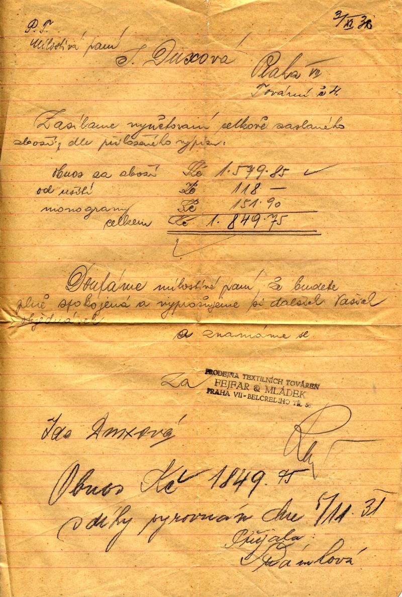 Duxová Ella: Obchodní korespondence a záznamy