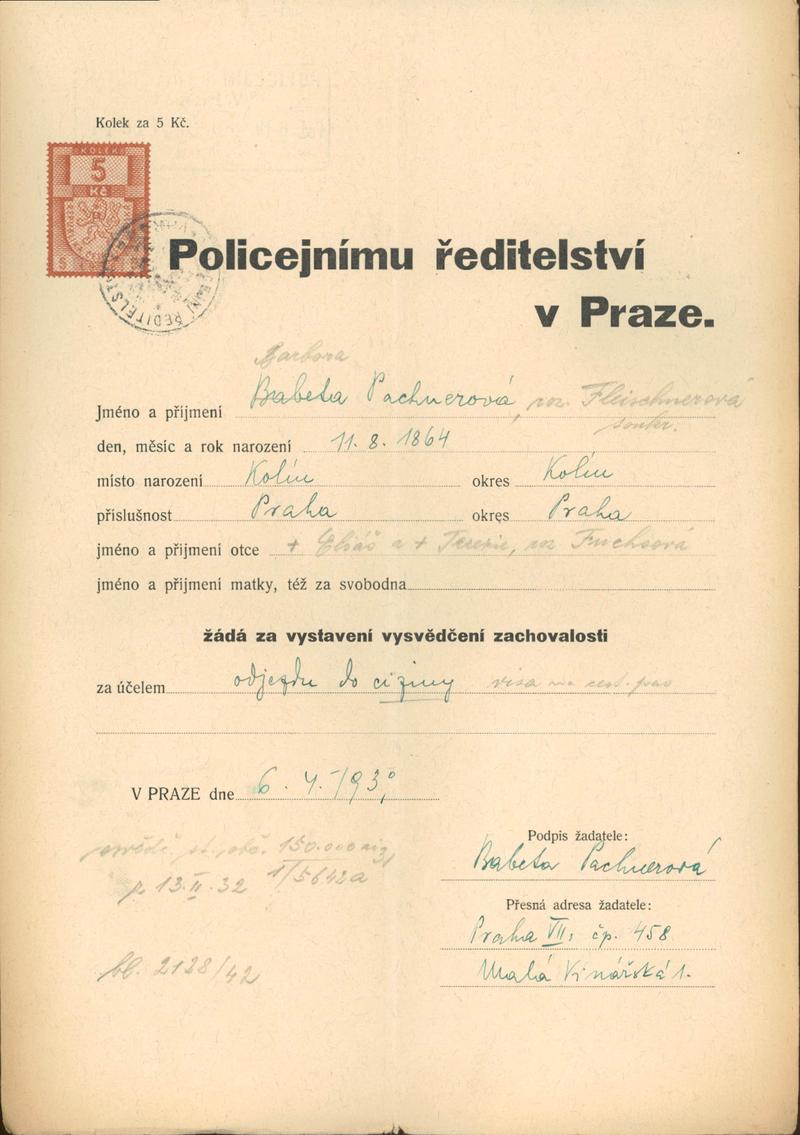 Národní archiv Praha > Policejní ředitelství v Praze > 1941-1950 > P > Pachnerová Babeta