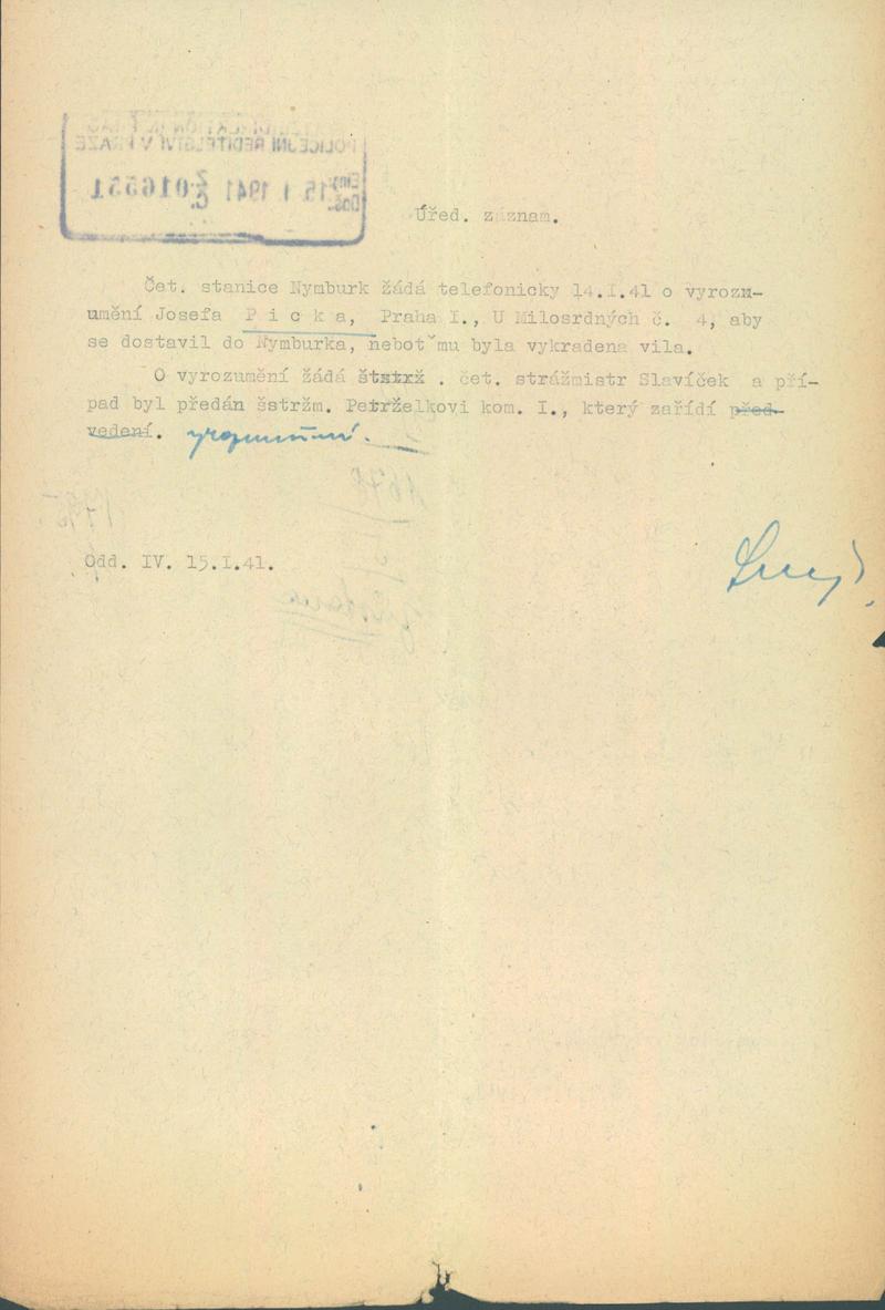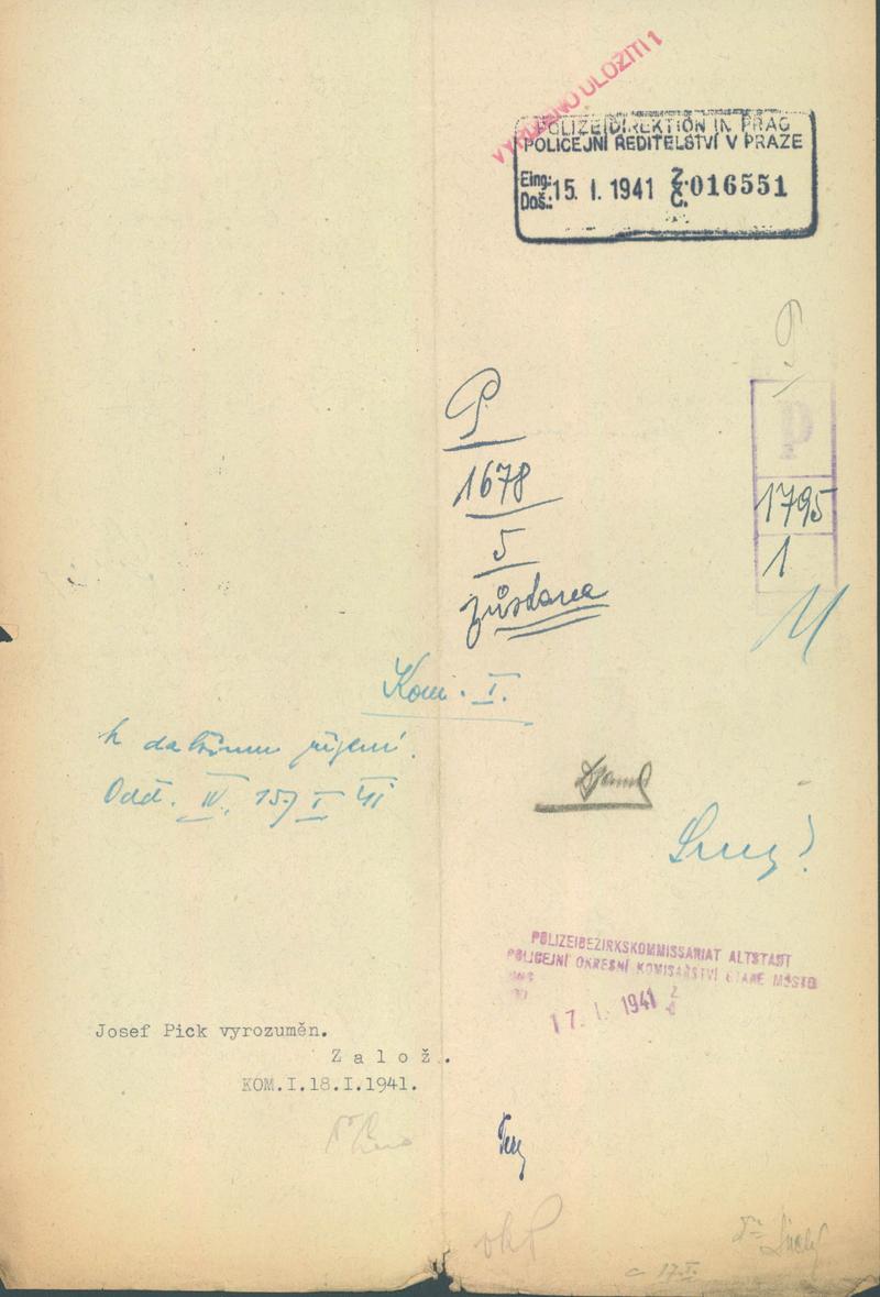Národní archiv Praha > Policejní ředitelství v Praze > 1941-1950 > P > Pick Josef