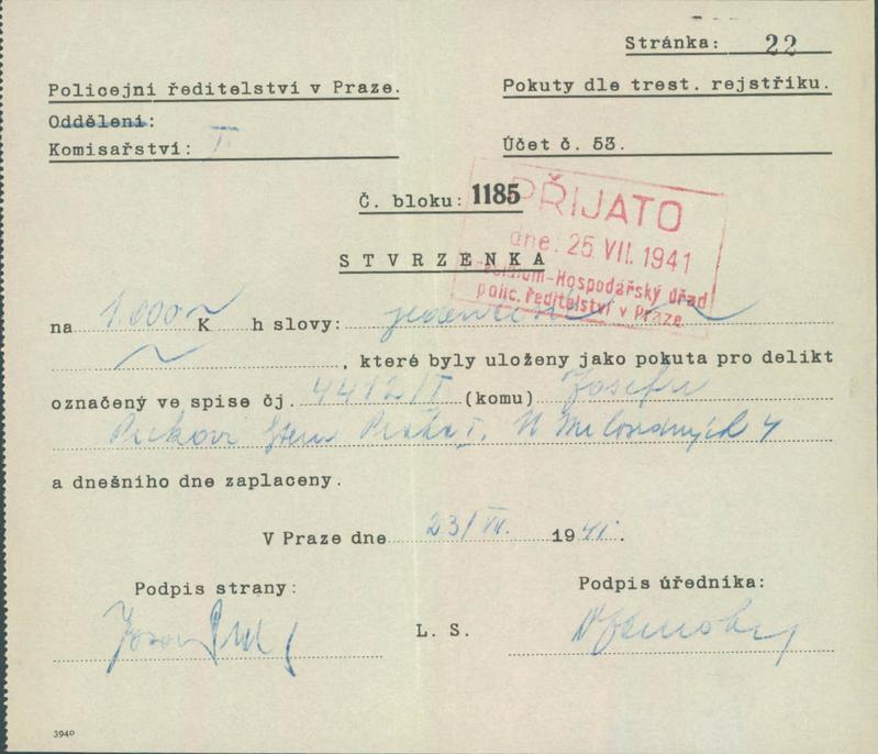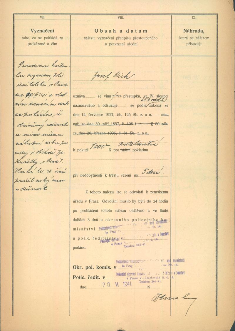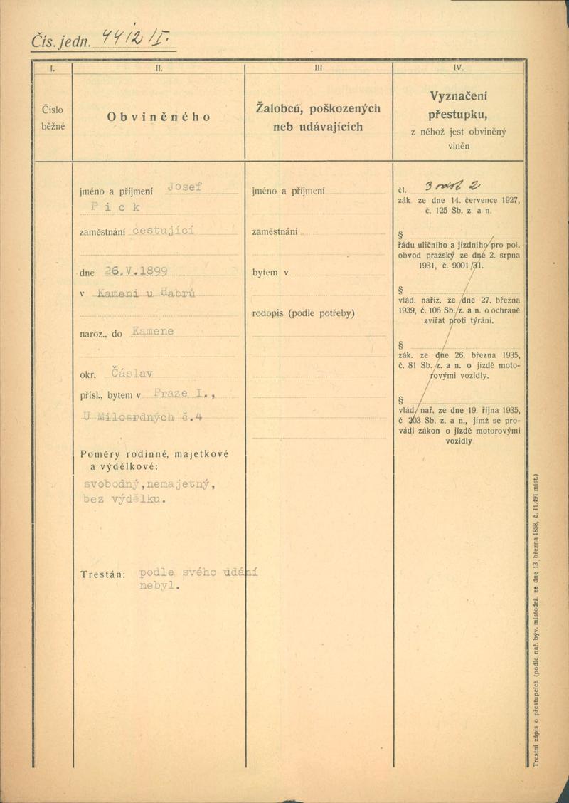 Národní archiv Praha > Policejní ředitelství v Praze > 1941-1950 > P > Pick Josef