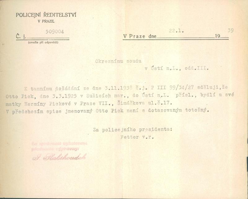 Národní archiv Praha > Policejní ředitelství v Praze > 1941-1950 > P > Pick Otto