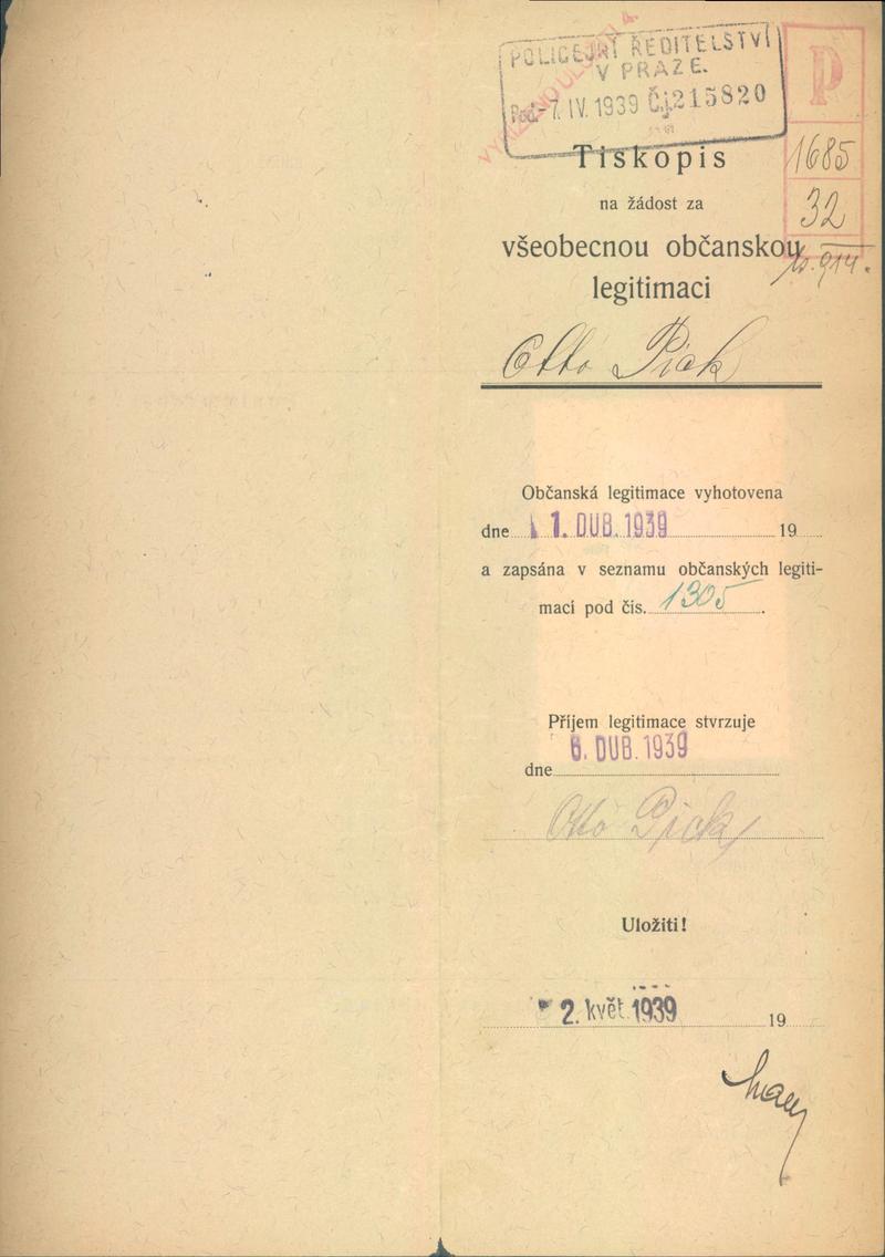 Národní archiv Praha > Policejní ředitelství v Praze > 1941-1950 > P > Pick Ota