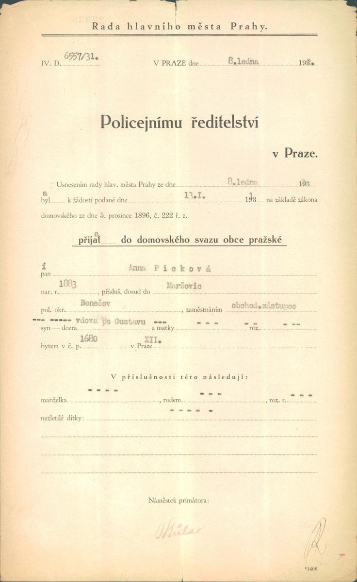 Národní archiv Praha > Policejní ředitelství v Praze > 1941-1950 > P > Picková Anna