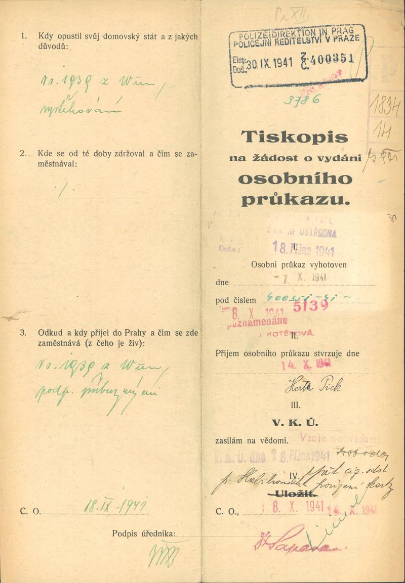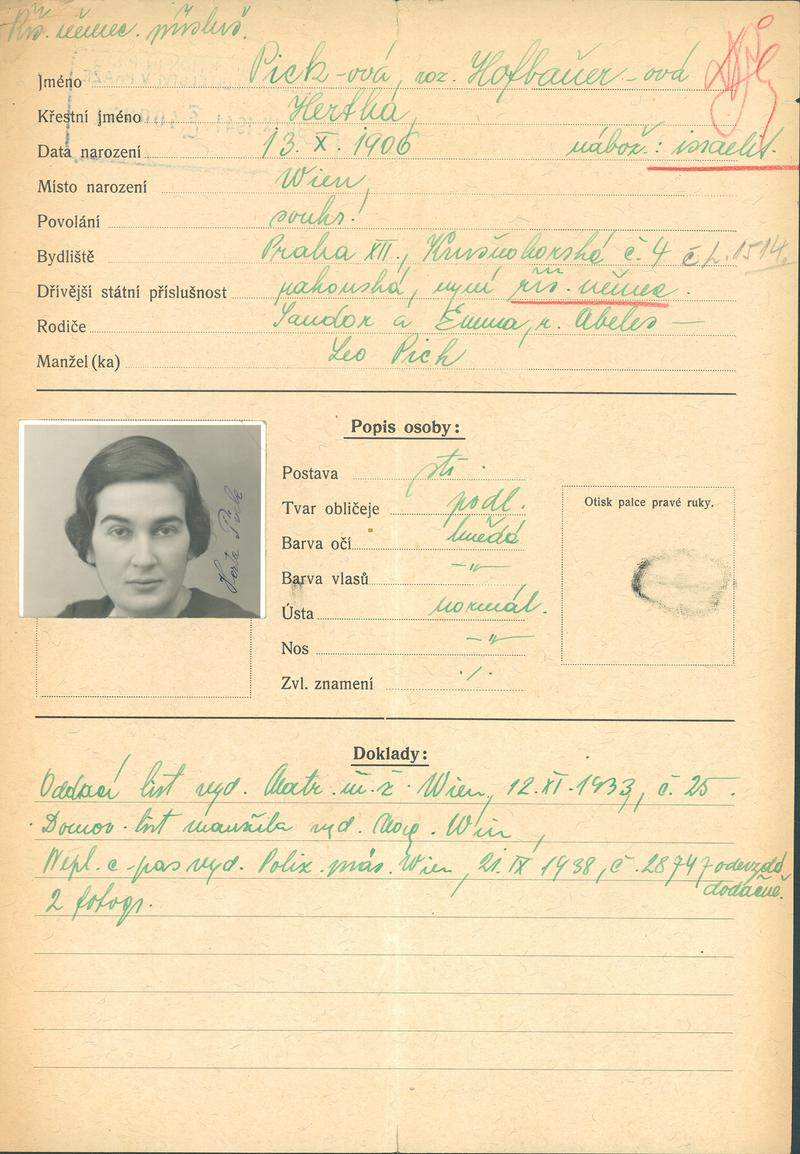 Národní archiv Praha > Policejní ředitelství v Praze > 1941-1950 > P > Picková Herta