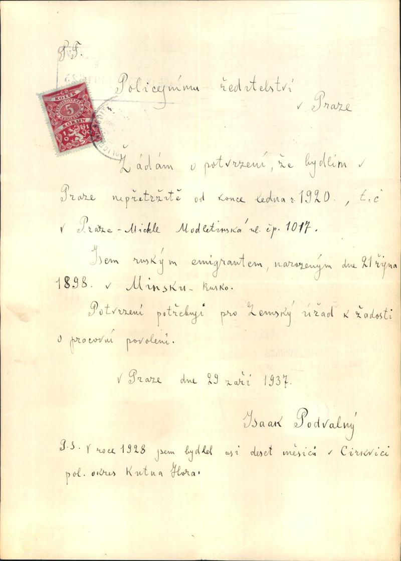 Národní archiv Praha > Policejní ředitelství v Praze > 1941-1950 > P > Podvalný Isák