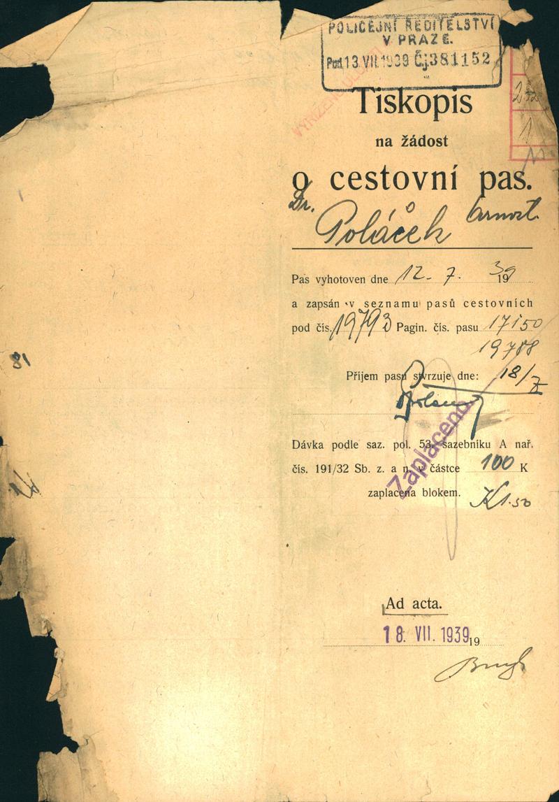 Národní archiv Praha > Policejní ředitelství v Praze > 1941-1950 > P > Poláček Arnošt