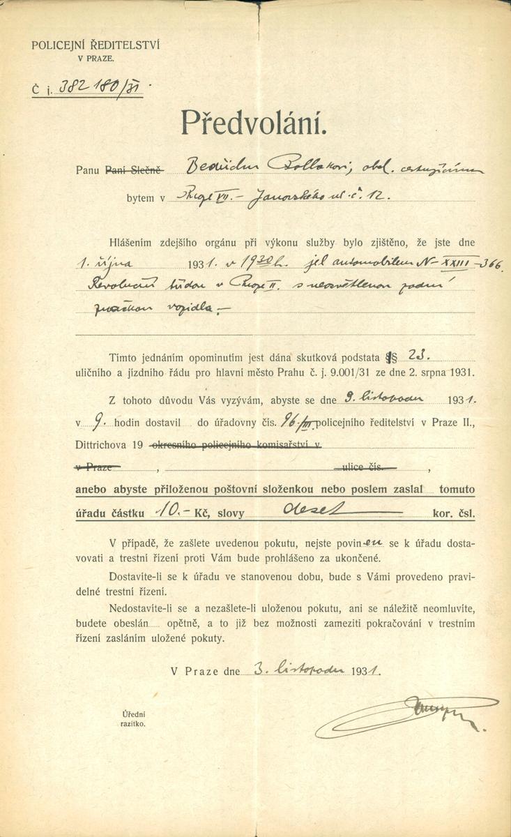 Národní archiv Praha > Policejní ředitelství v Praze > 1941-1950 > P > Pollak Bedřich