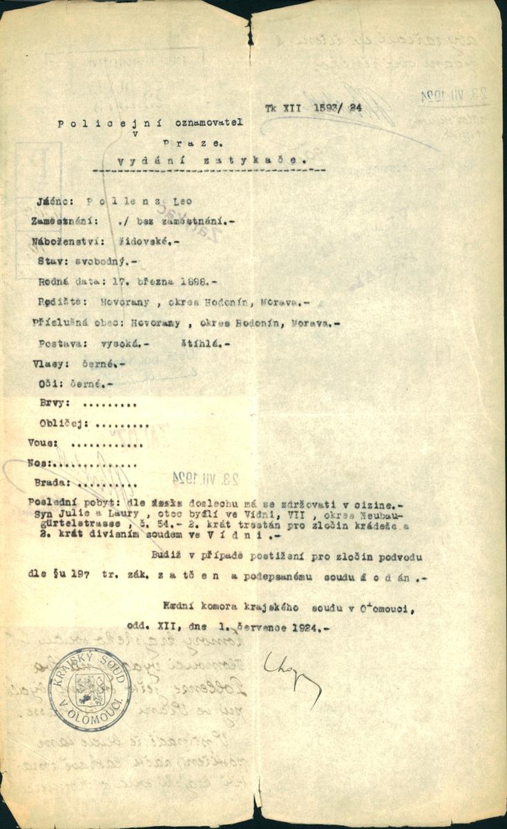 Národní archiv Praha > Policejní ředitelství v Praze > 1941-1950 > P > Pollenz Leo