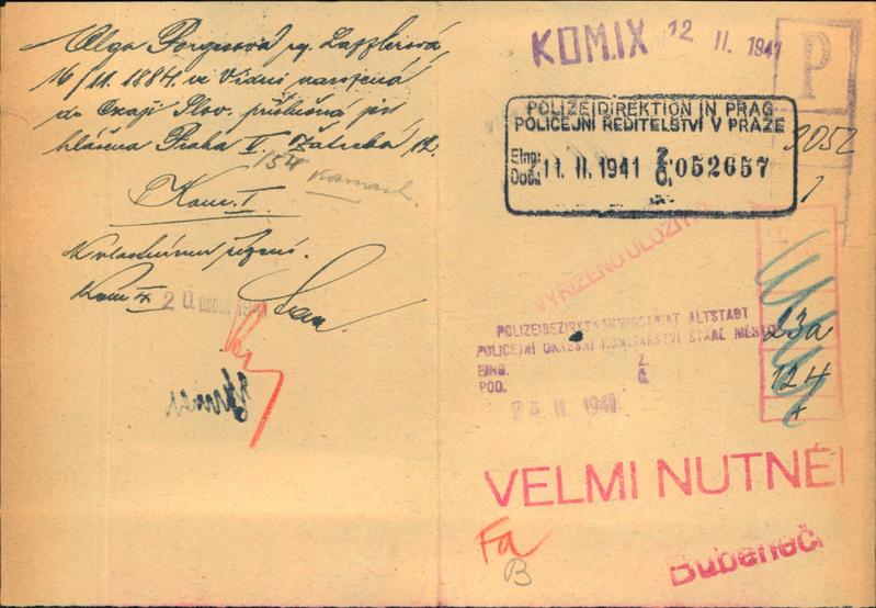 Národní archiv Praha > Policejní ředitelství v Praze > 1941-1950 > P > Porgesová Olga