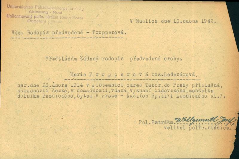 Národní archiv Praha > Policejní ředitelství v Praze > 1941-1950 > P > Propperová Marie