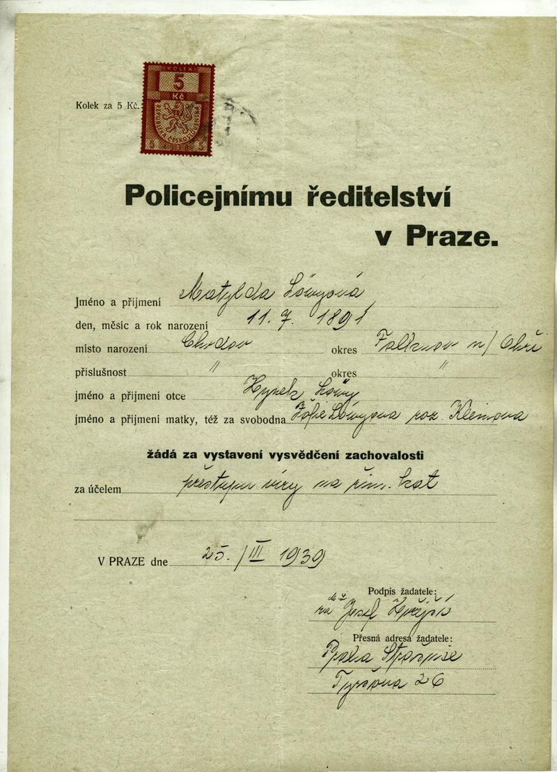 Národní archiv Praha > Policejní ředitelství v Praze > 1931-1940 > L > Löwyová Matylda