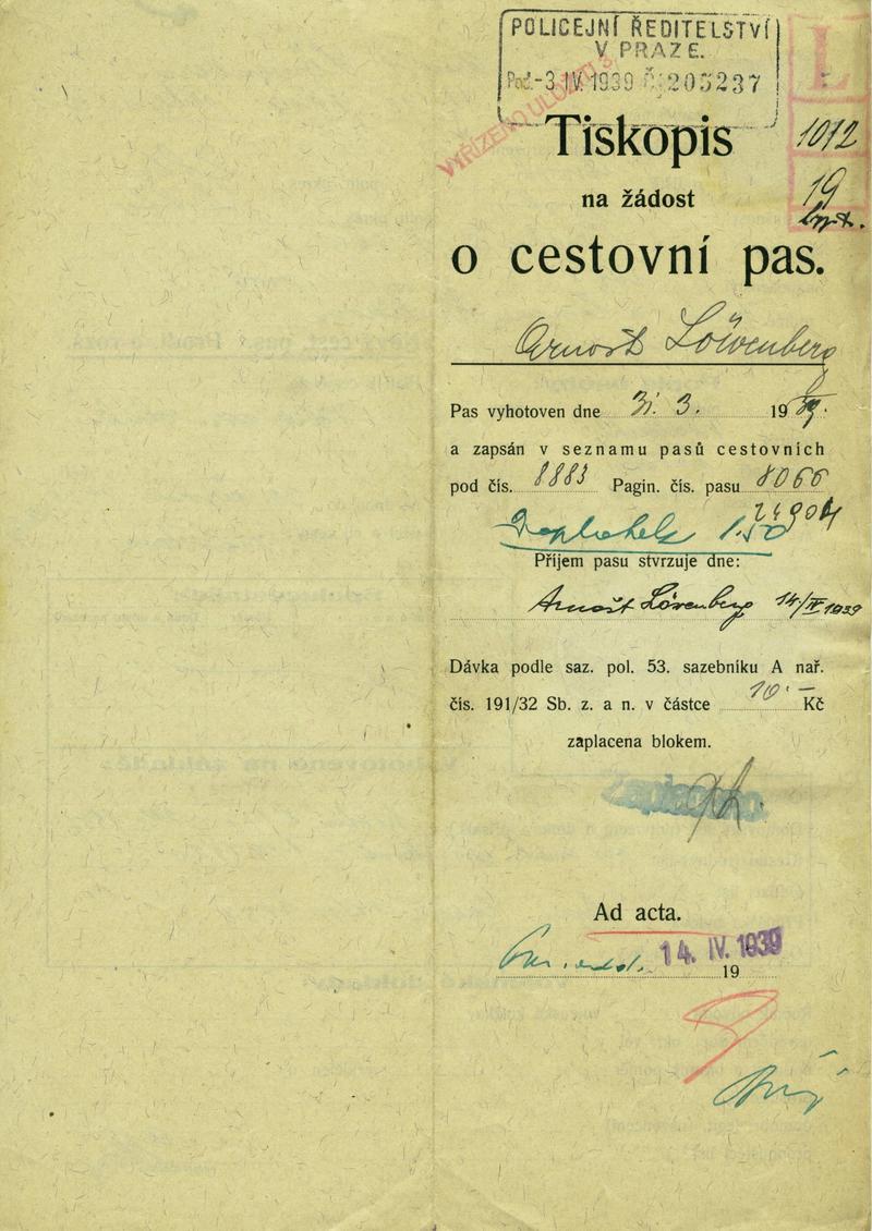 Národní archiv Praha > Policejní ředitelství v Praze > 1931-1940 > L > Löwenberg Arnošt