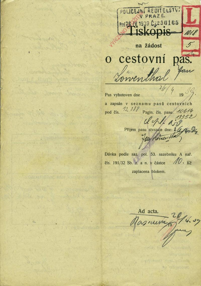 Národní archiv Praha > Policejní ředitelství v Praze > 1931-1940 > L > Löwenthal Jan