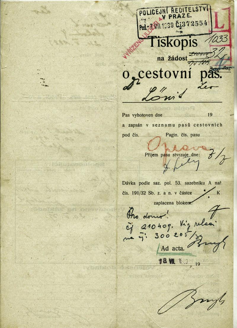 Národní archiv Praha > Policejní ředitelství v Praze > 1931-1940 > L > Löwit Leo