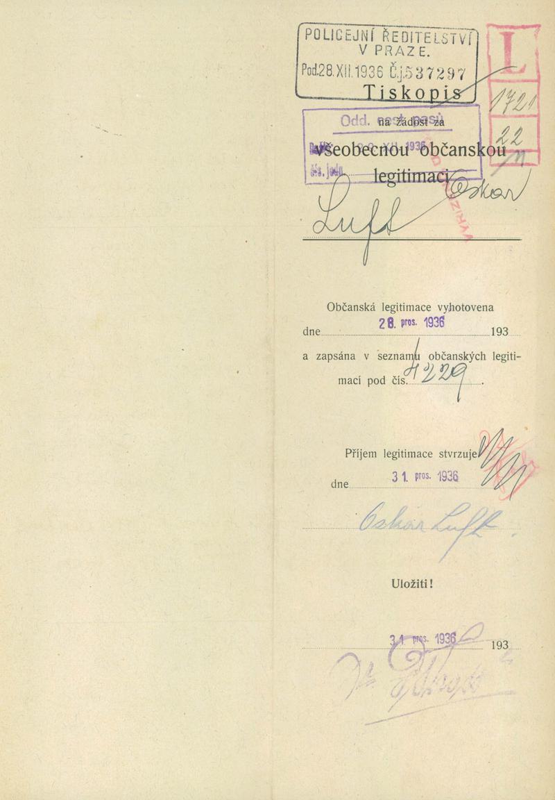 Národní archiv Praha > Policejní ředitelství v Praze > 1931-1940 > L > Luft Oskar
